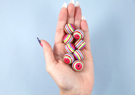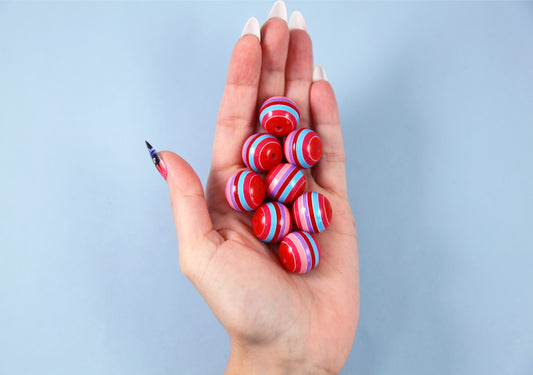 Chunky Striped Beads - 20mm Red Pink Purple...