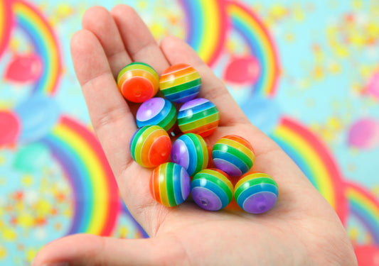 Rainbow Beads - 20mm Chunky Translucent Rainbow Striped...