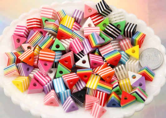 12mm Triangle Striped Resin Beads, mixed color, small...