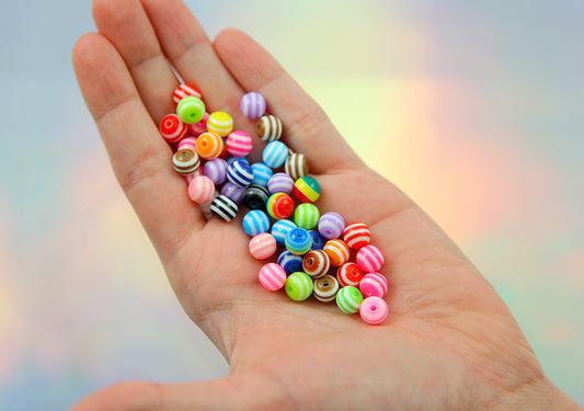 8mm Striped Resin Beads, mixed color, small size...