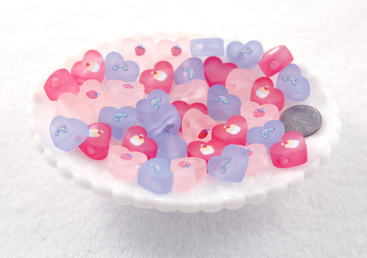 Pastel Heart Beads - 22mm Frosted Pastel Beads...