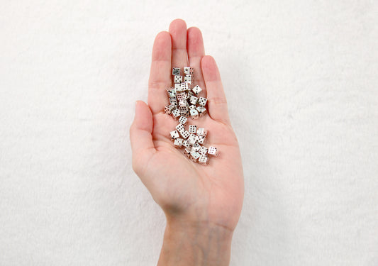 Tiny Dice Beads - 6mm Electroplated Silver Color...