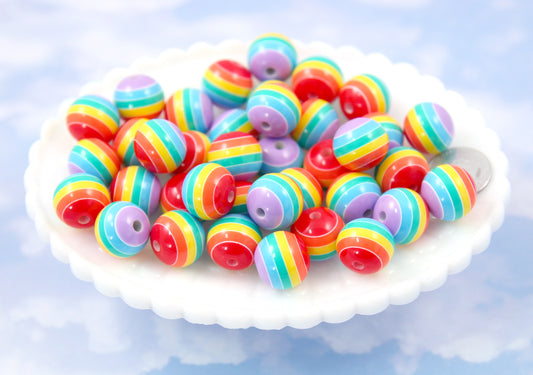 Rainbow Beads - 16mm Colorful Striped Resin Beads,...