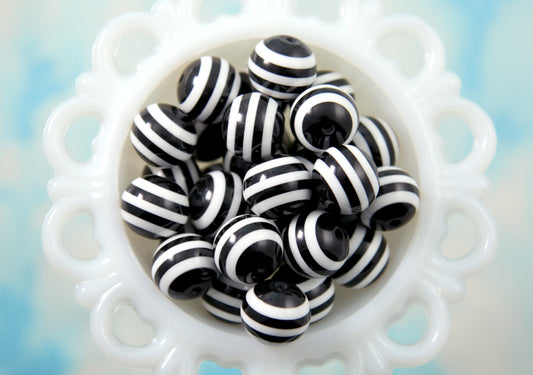 Black and White Striped Resin Beads - 20mm...