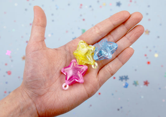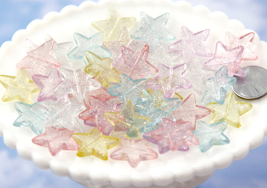 Glitter Star Beads - 22mm Pretty Pastel Glitter...