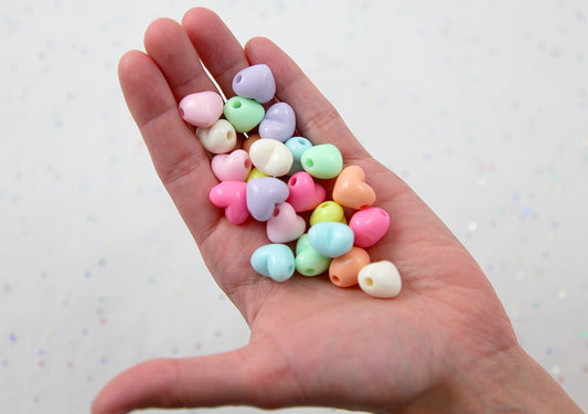 Pastel Heart Beads - 15mm 3D Convex Heart...