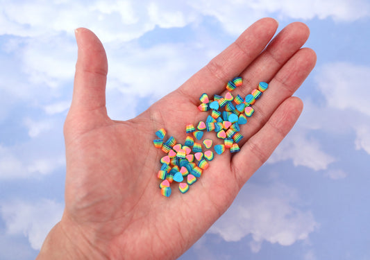 5mm Tiny Bright Striped Blue Neon Rainbow Hearts...