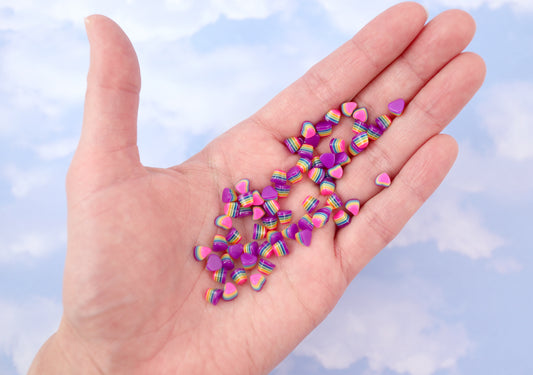 5mm Tiny Bright Striped Purple Neon Rainbow Hearts...