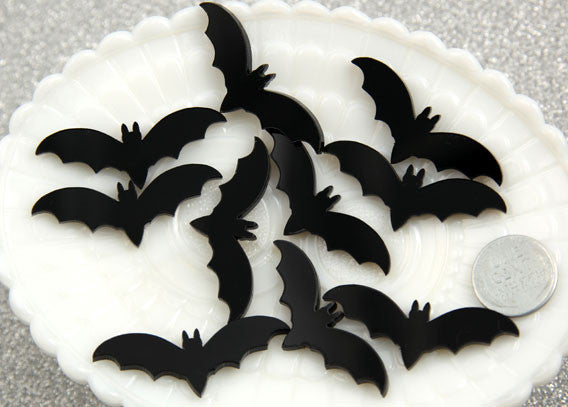 45mm Black Bats Acrylic or Resin Cabochons - 6 pc set