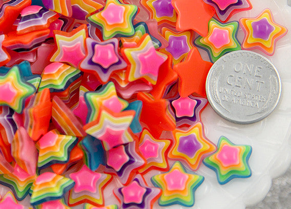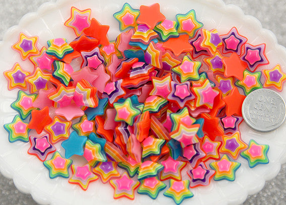 Star Flat Backs - 13mm Tiny Bright Striped Neon Rainbow Stars Resin Cabochons - 16...