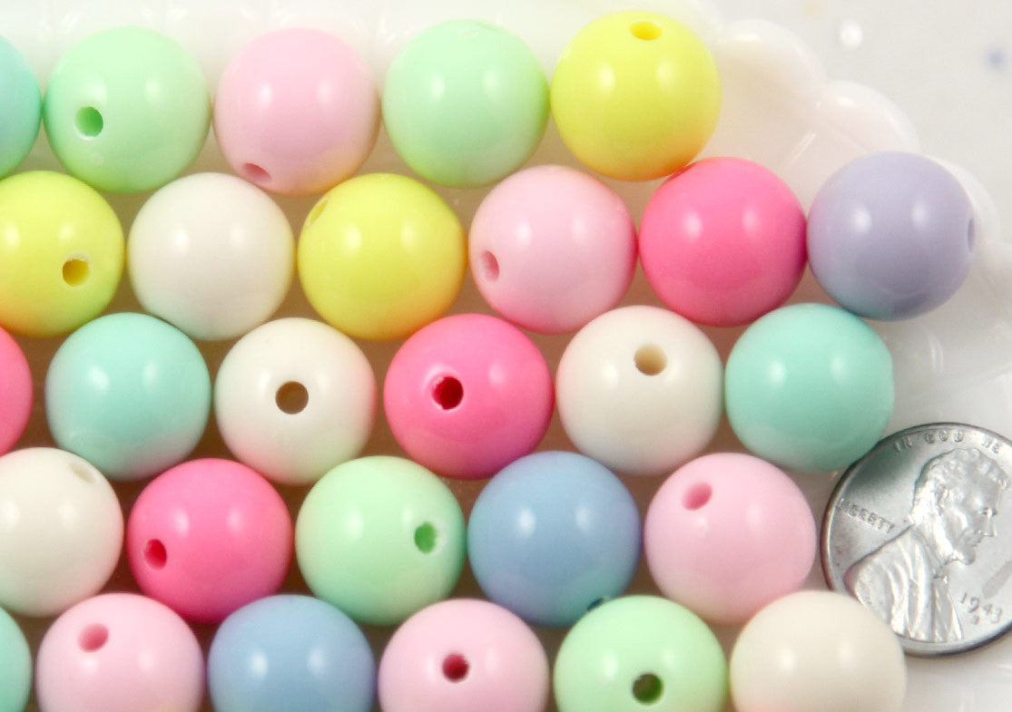 14mm Beautiful Bright Pastel Round Shape Acrylic or Resin Beads - 32 pcs set