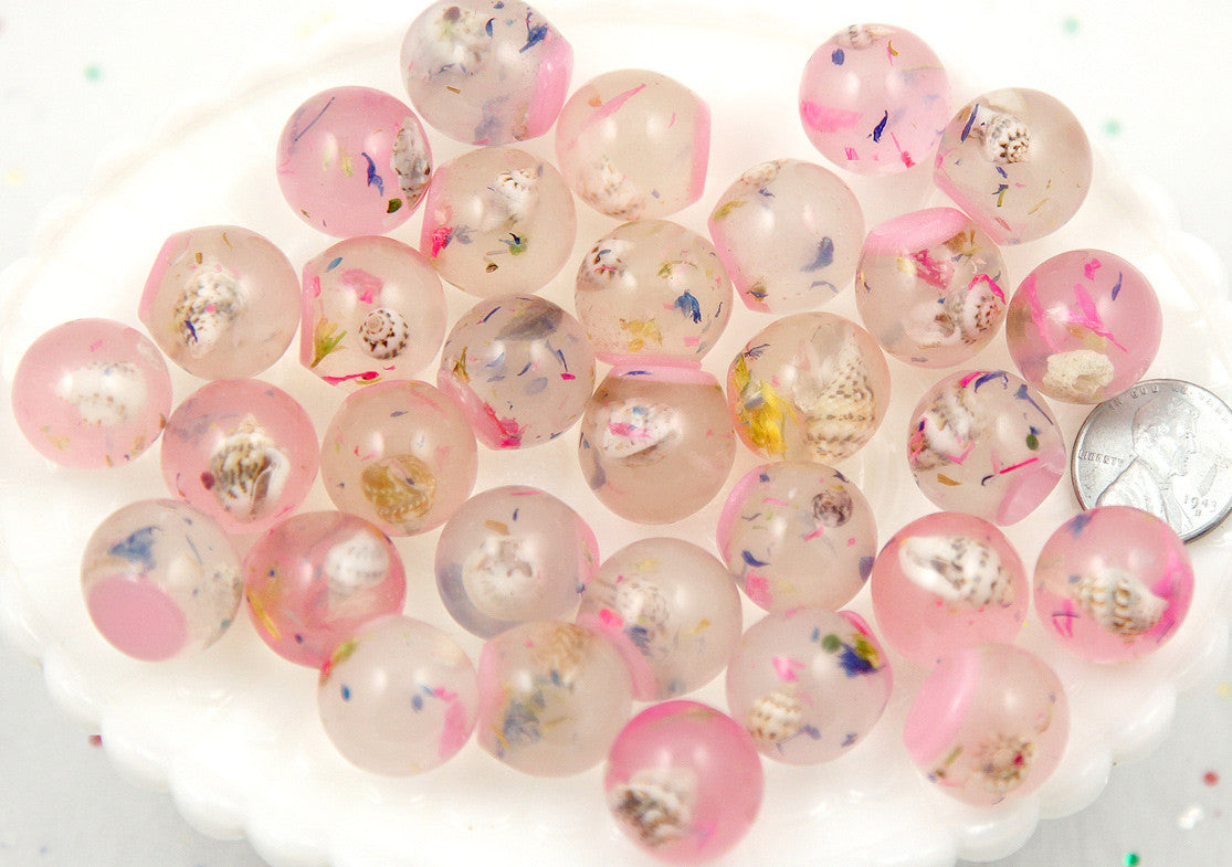 17mm Pink Fantasy World Sea Shell Mini Globe Flatback Resin Cabochons - 8 pc set