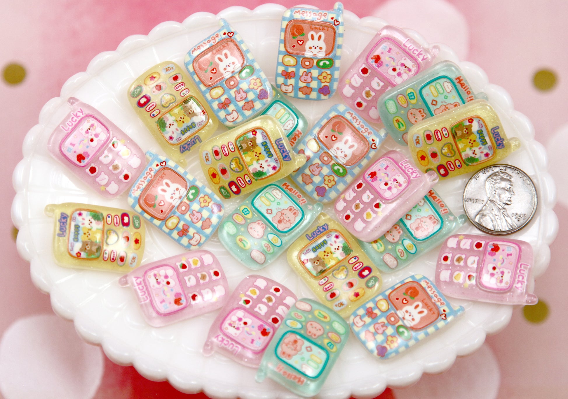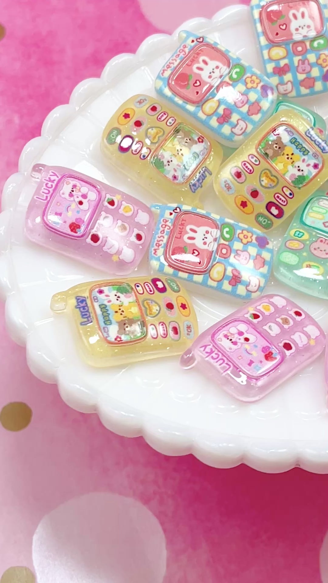 These super tiny and retro cell phone resin pieces that are flat on the back.