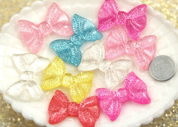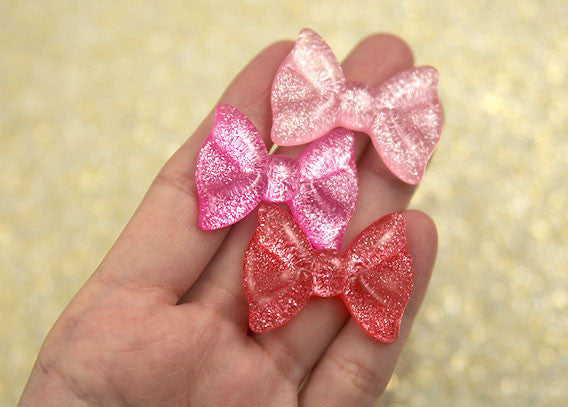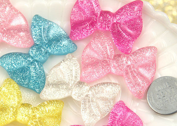35mm Shimmery Ribbon Bow Flatback Resin Cabochons - 6 pcs set