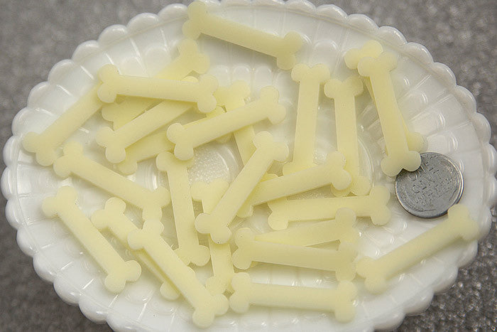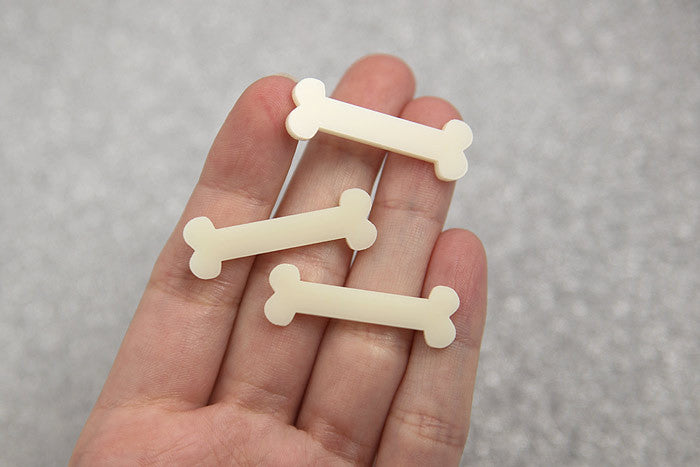 Cute bones flatbacks - perfect for your spooky or goth motif! The color is an offwhite "bone" - not perfect white - to make them look more realistic.