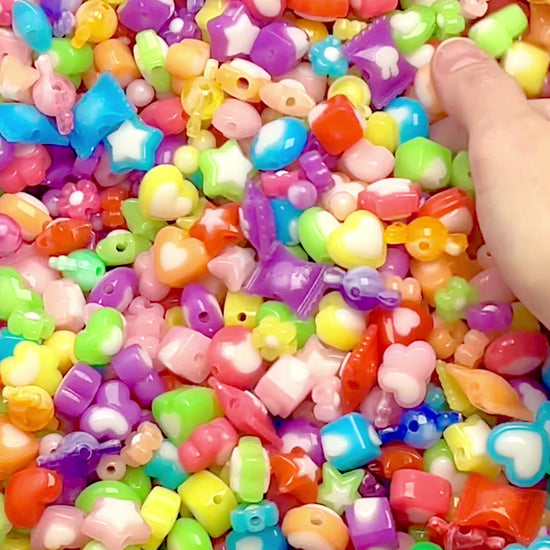 Acrylic Jelly Color Bead Grab Bag - Mixed Lot of Bright Plastic Beads - for...
