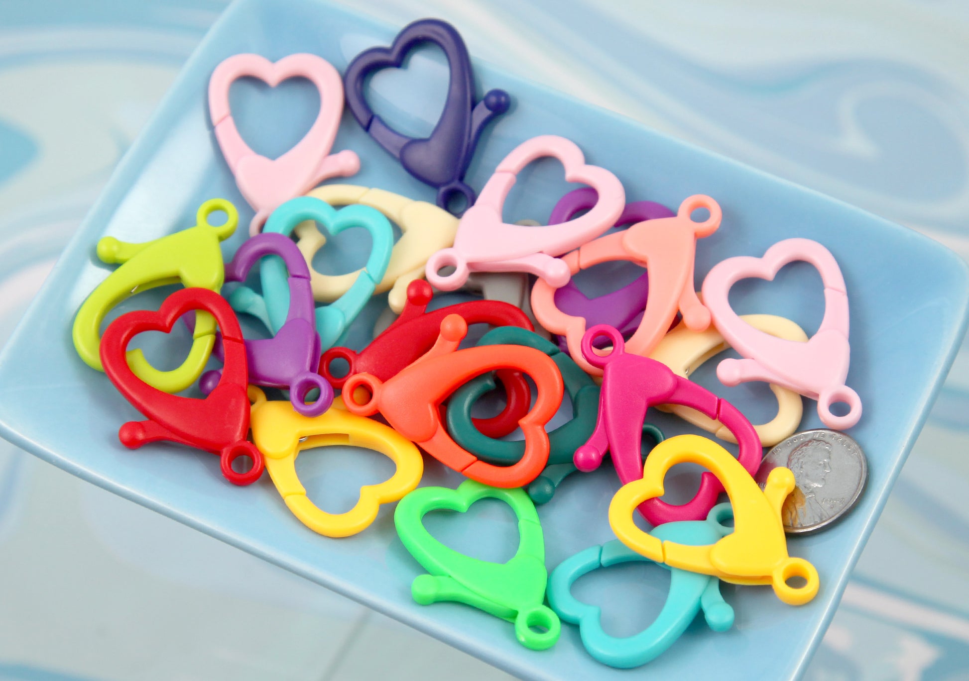 Big Heart Clasp - 21 pieces - 35mm Heart Shaped Plastic Clasp or Keychain Clip