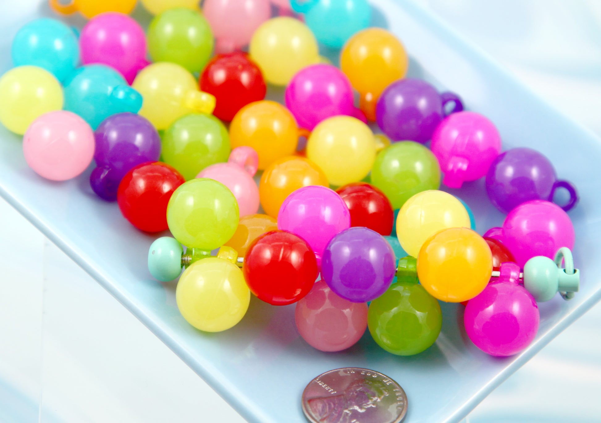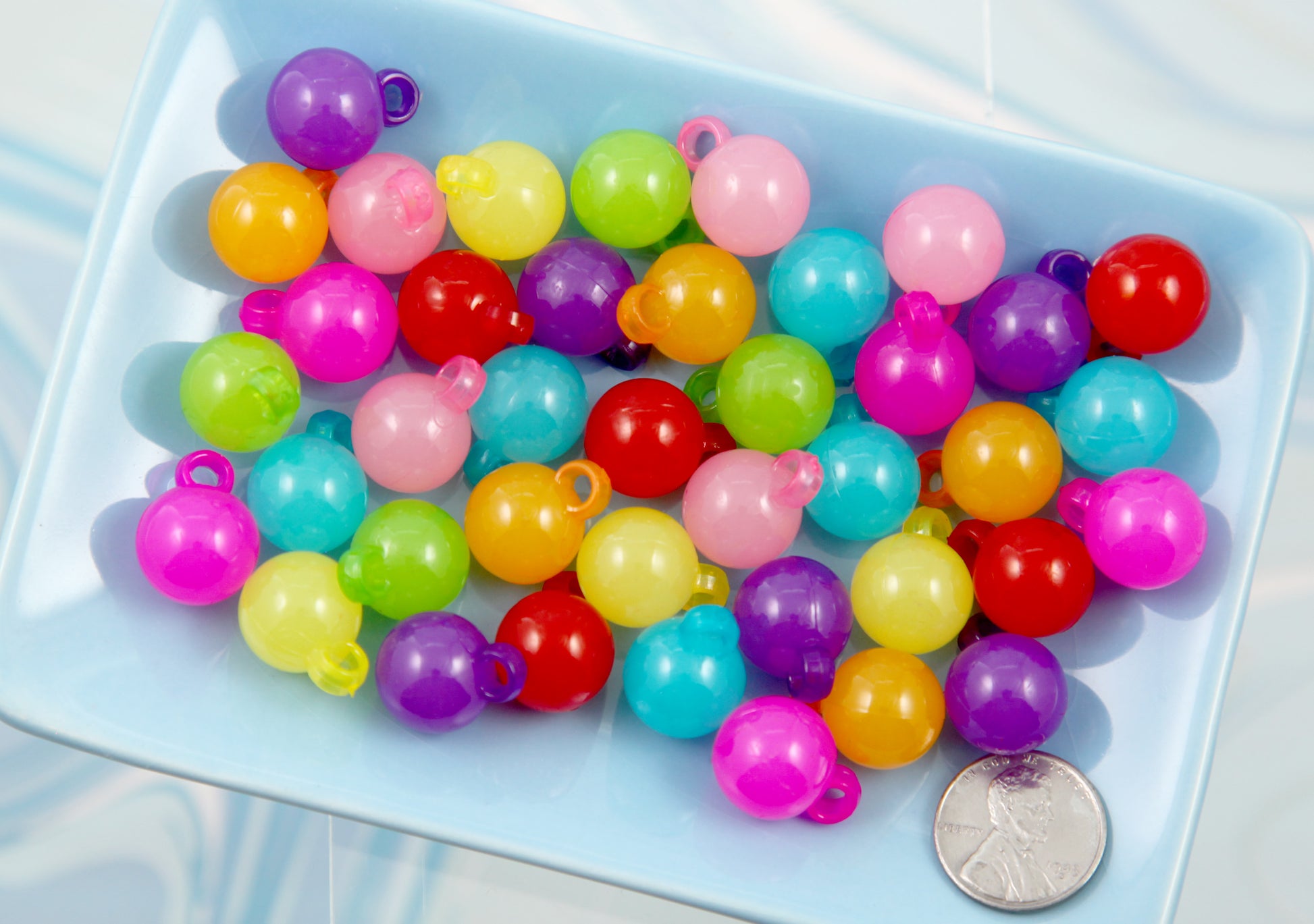 Bubble Charms - 50 pieces - 15mm Jelly Color Drop Bubble Shape Ball Charms Acrylic or Plastic Dangly Charms or Pendants
