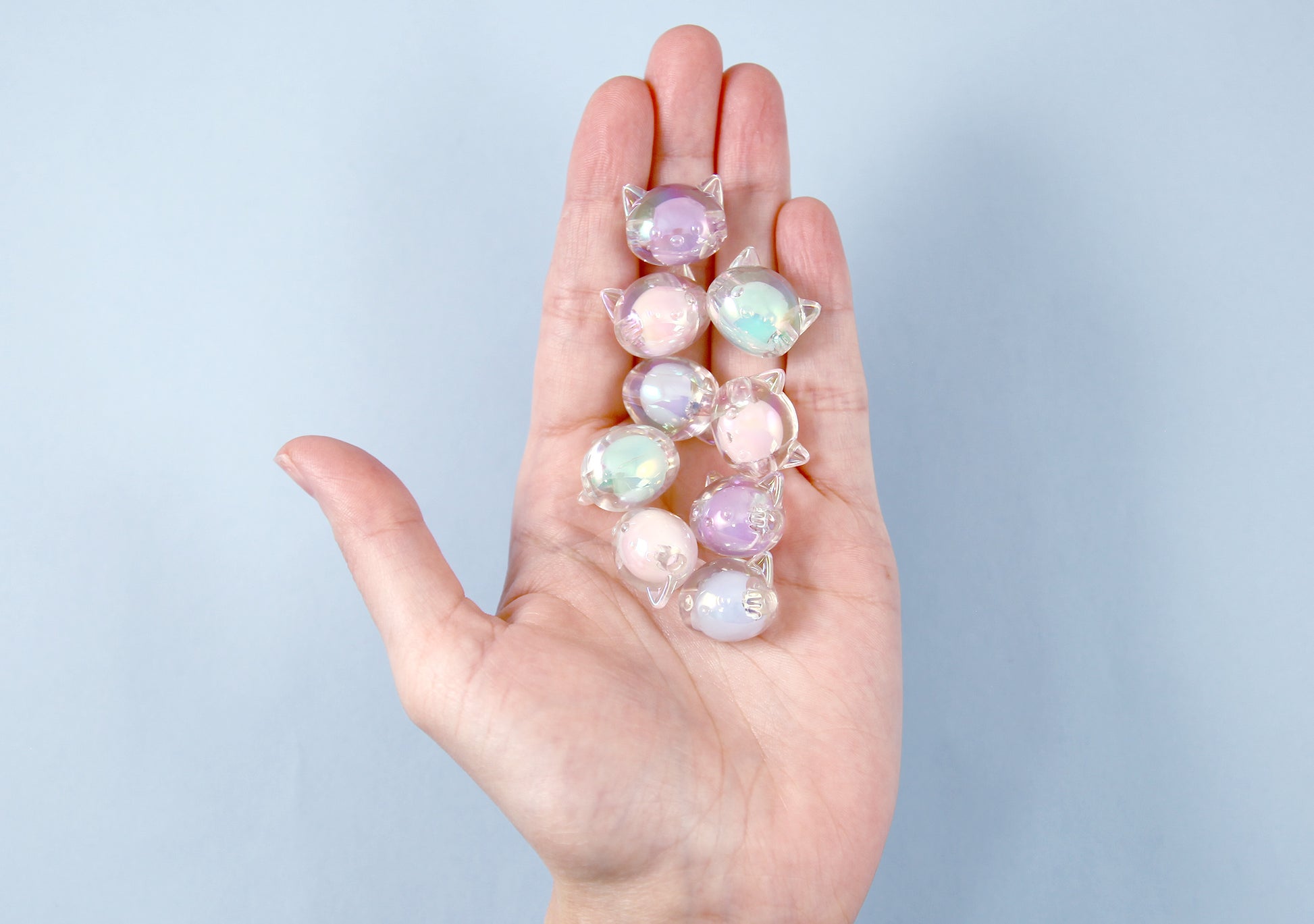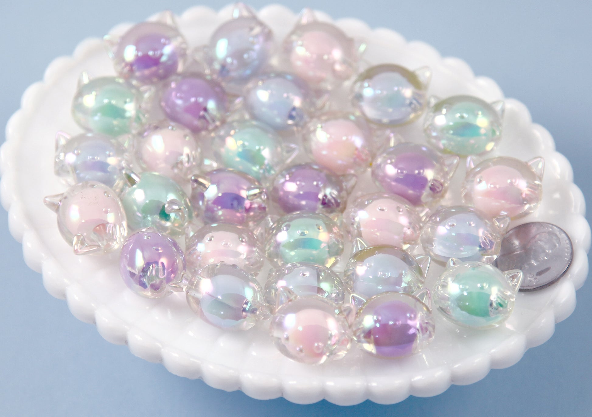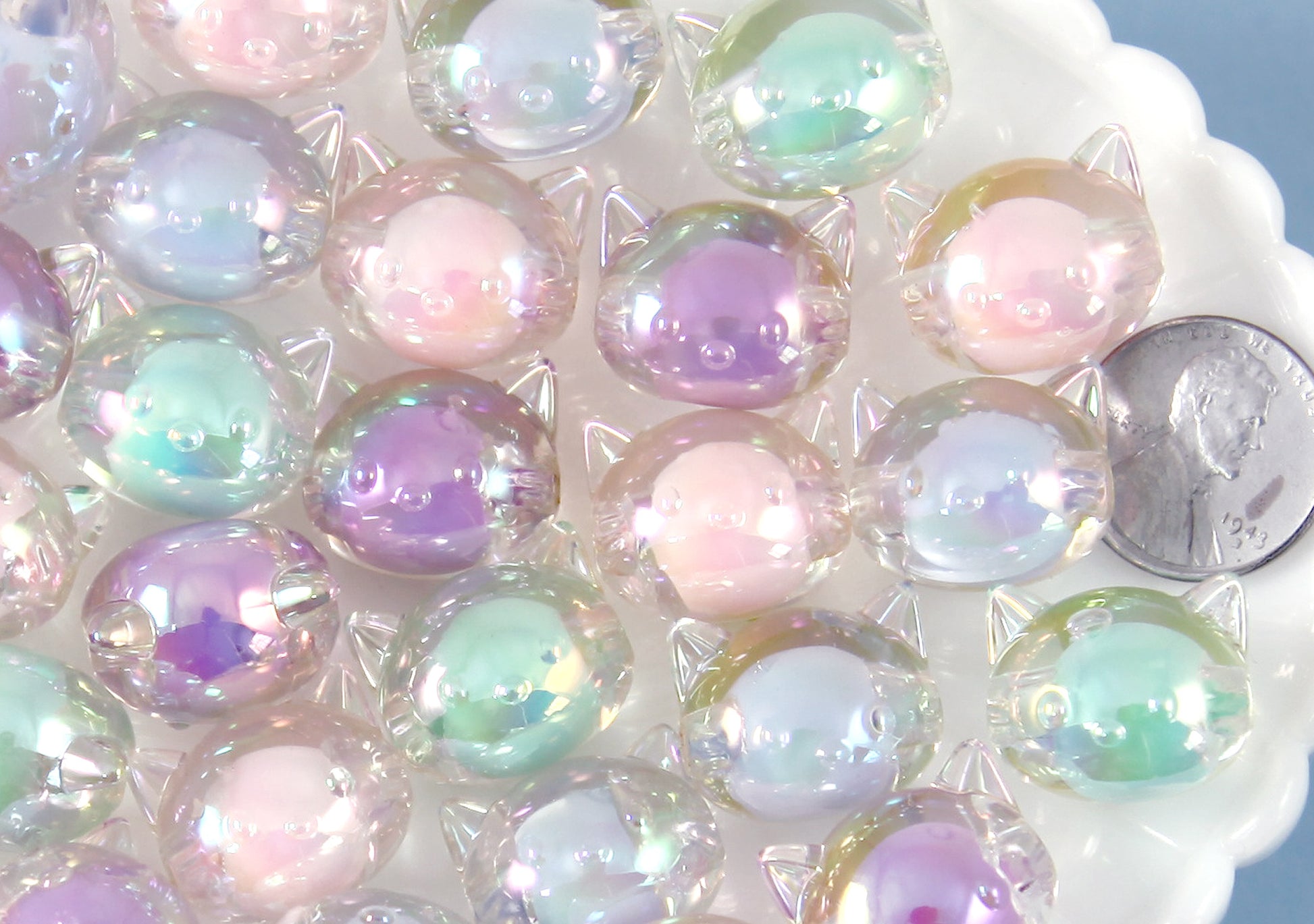 Cat Beads - 18mm Pastel AB Kitty Bead Chunky Acrylic or Plastic Beads - 12 pc set