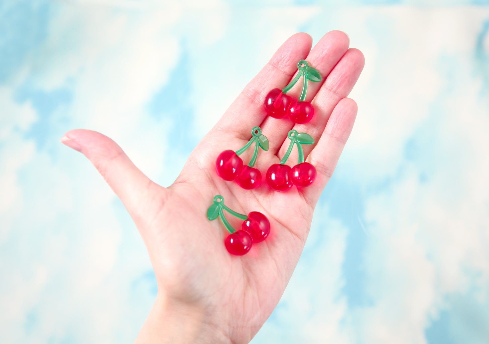 Ultra-cute cherry-shaped pendants that make any project adorable. They are the perfect size and classic cherry shape. They already have a hole at the top - easily make any kind of jewelry.