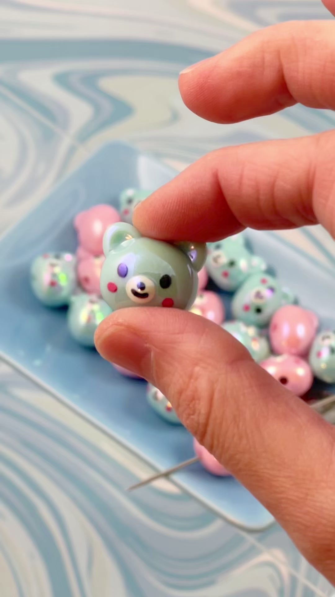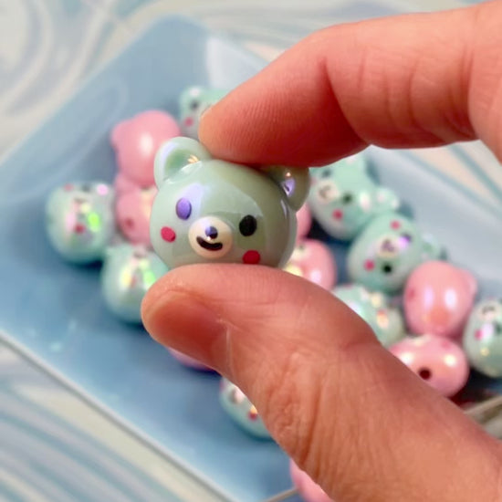 Cute Bear Beads - 20mm AB Pink and Blue Bears Resin or Acrylic Beads (8...