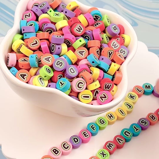 Cute Letter Beads - 10mm Colorful Fimo Alphabet Bead or Polymer Clay Letter Beads (200 pcs)