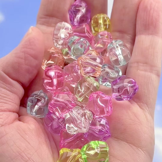 Cute Star Beads - 12mm Little Pastel Transparent Rounded Star Acrylic Beads - Colorful Rounded...