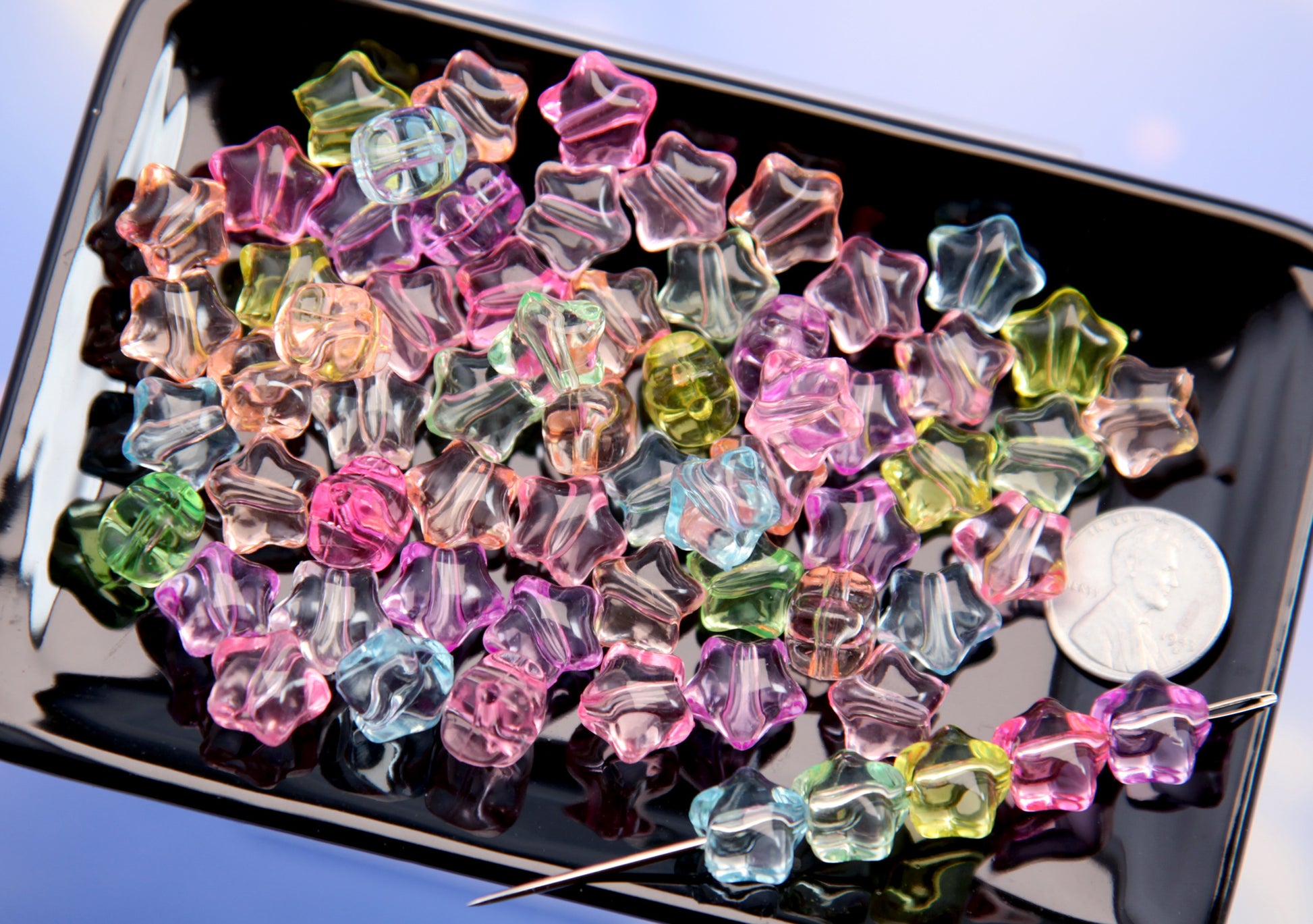 Cute Star Beads - 12mm Little Pastel Transparent Rounded Star Acrylic Beads - Colorful Rounded Tiny Plastic or Acrylic Stars Beads (100 pcs)