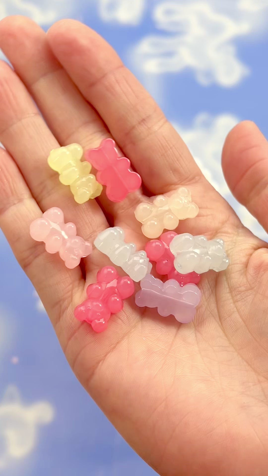 Fake Gummy Bear Beads - 18mm Jelly Color Fake Gummy Bears with Hole for Stringing - Fake Candy Resin Beads (40 pieces)