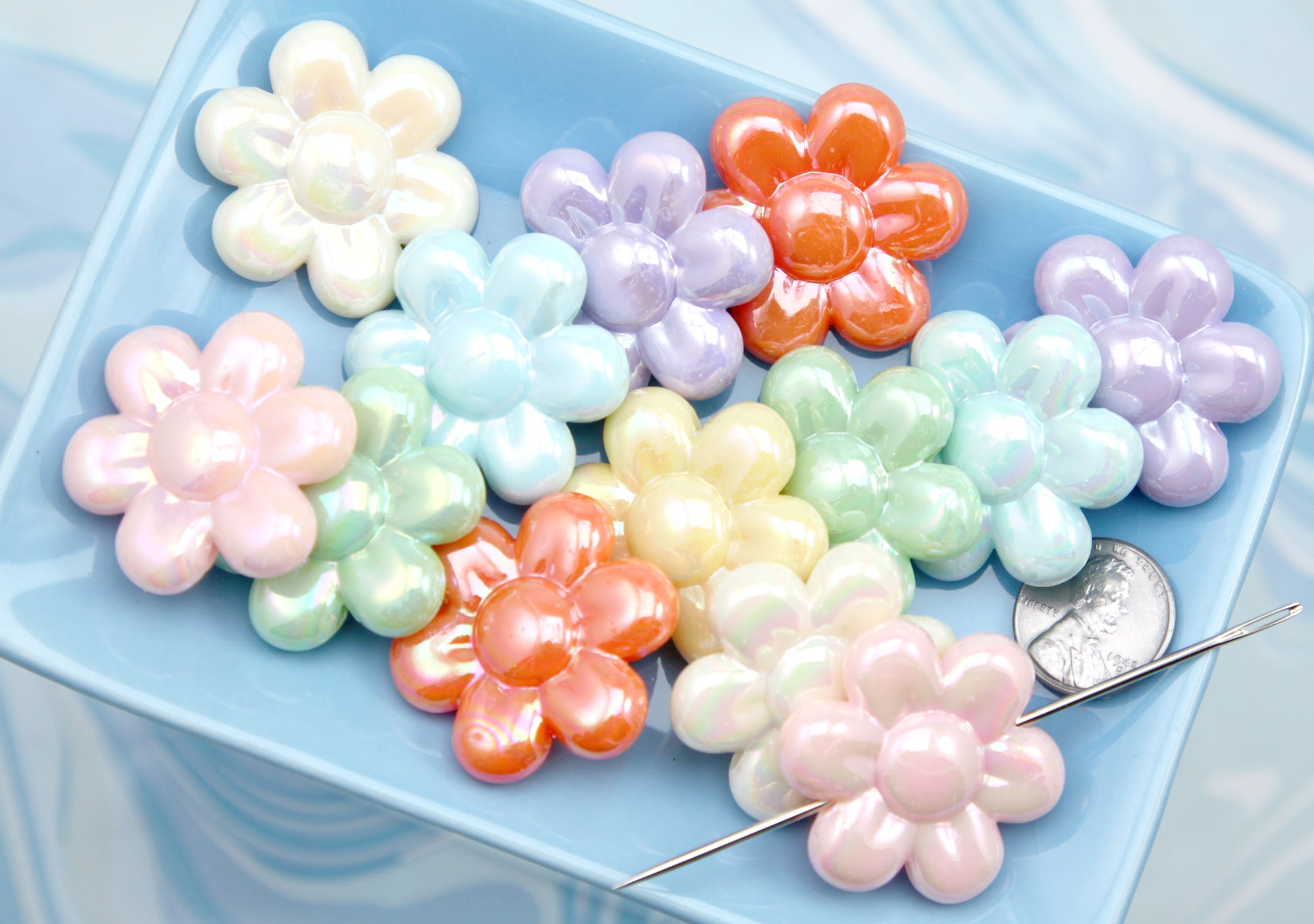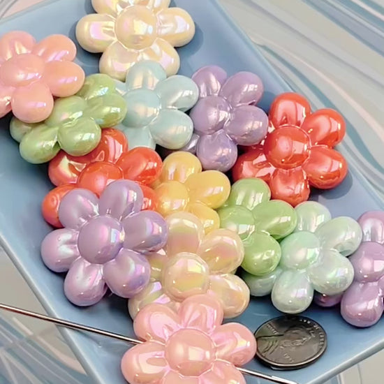 Flower Beads - 30mm Big Flower Bead Chunky Daisy Shape Plastic Acrylic or Resin Beads...