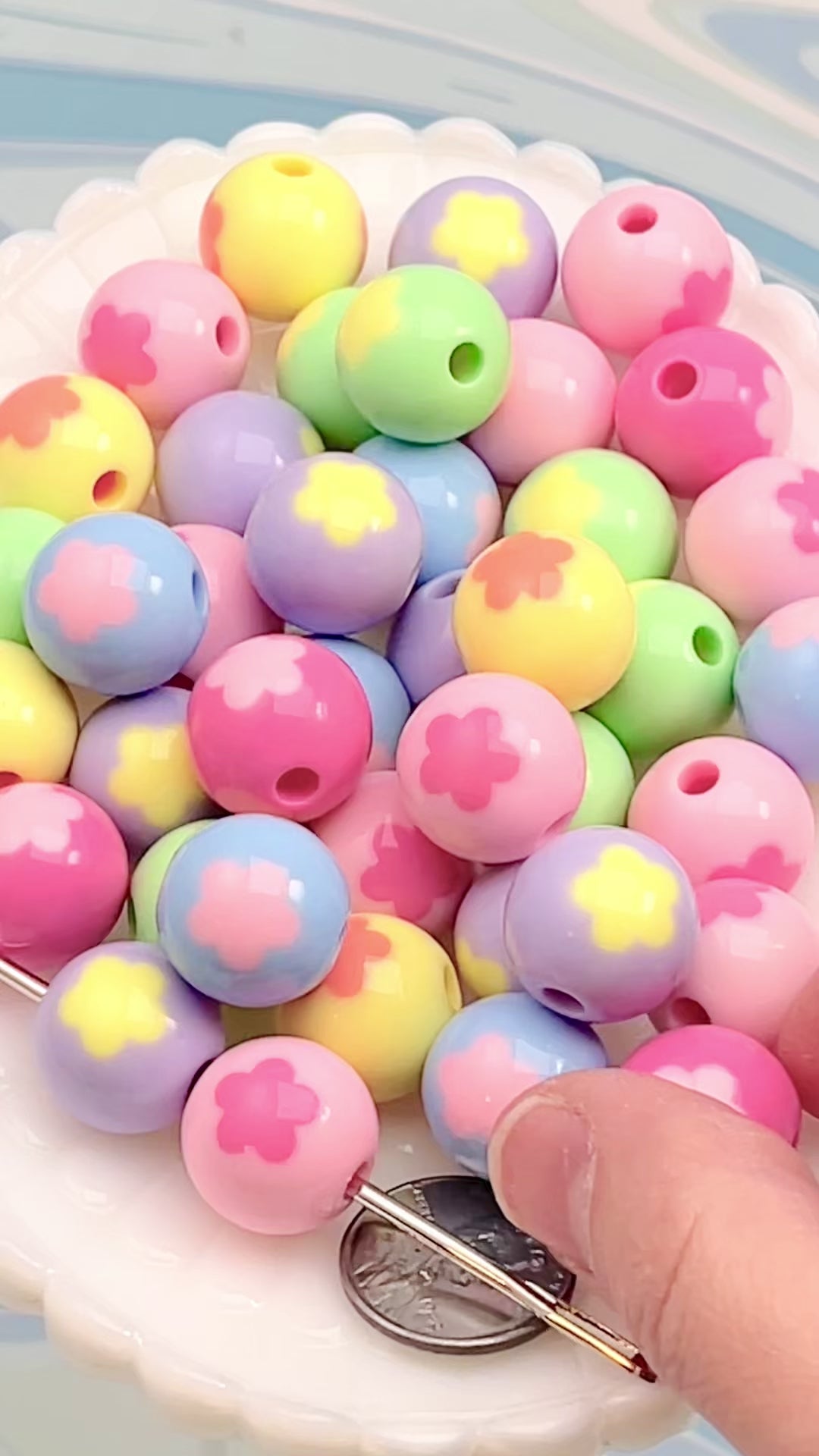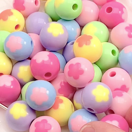 Flower Beads - 35 pieces - 15mm Cute Inlaid Flower Round Acrylic or Plastic Beads