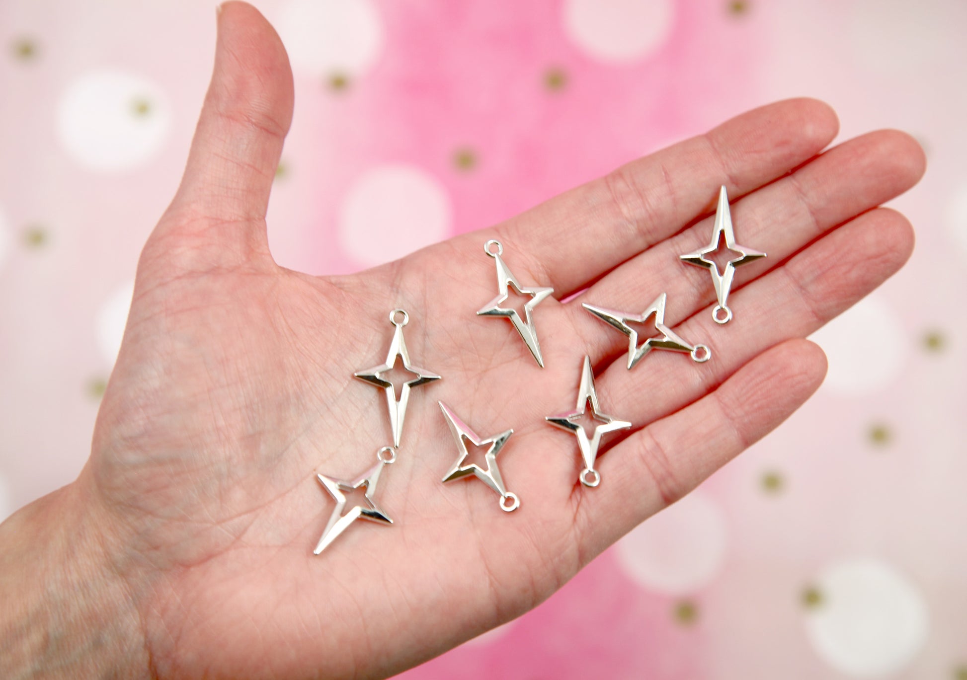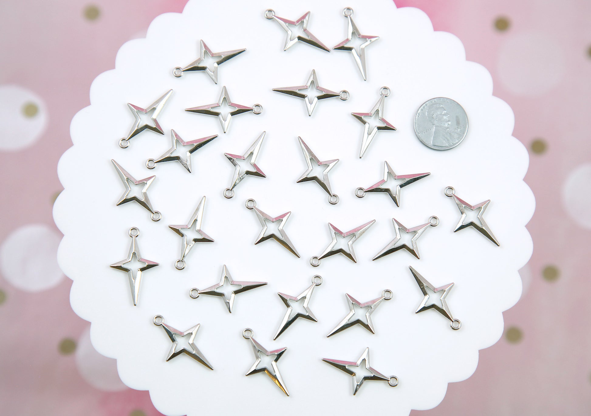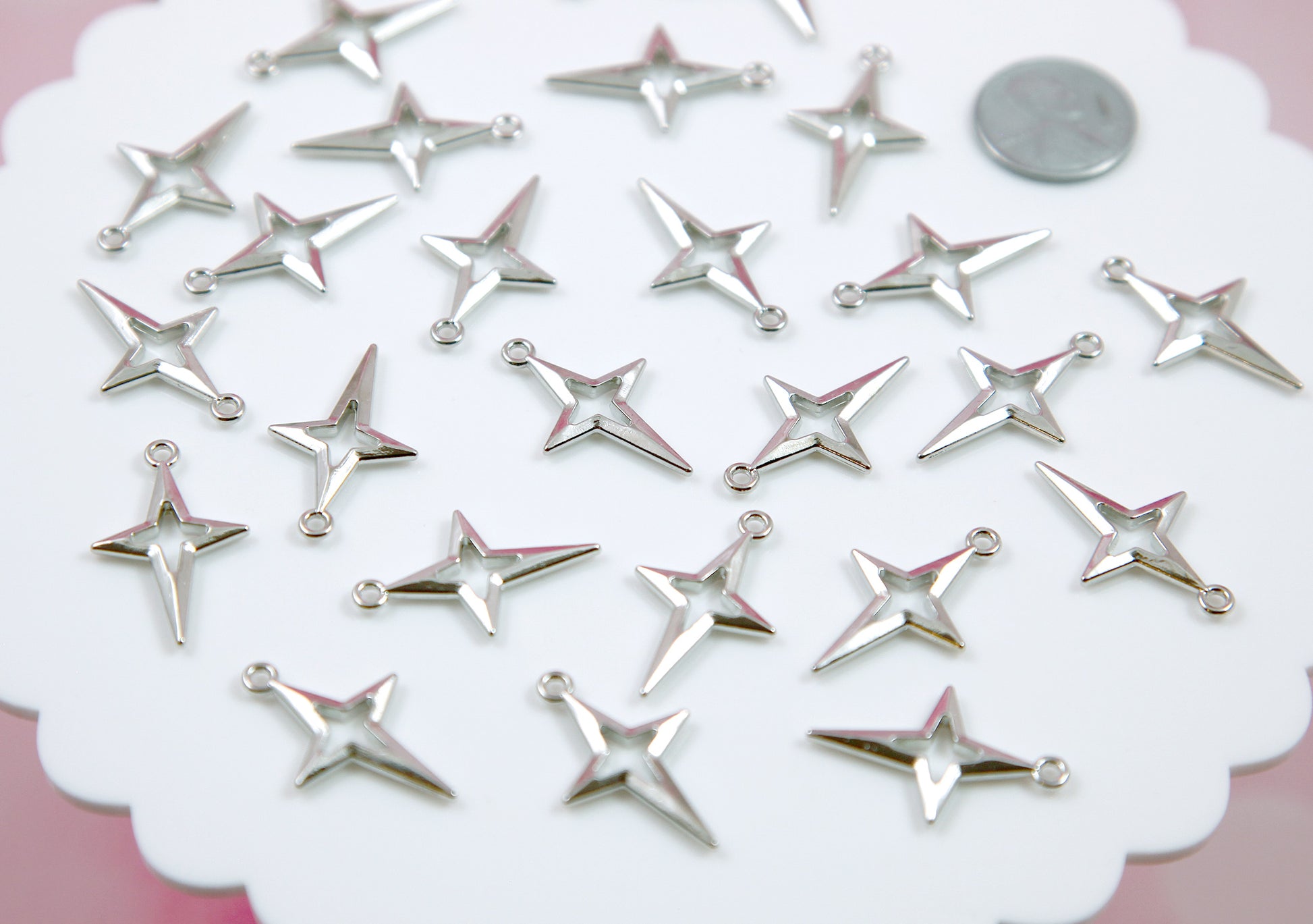 Four Pointed Star Charms - 20 pieces - Silver Color - 27mm Shining Stars Pendants...