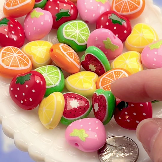Fruit Beads - Mixed Fruit Salad Acrylic Beads - 20mm Fruit Slices Citrus Fruity Beads Acrylic or Resin Beads (12 pieces)