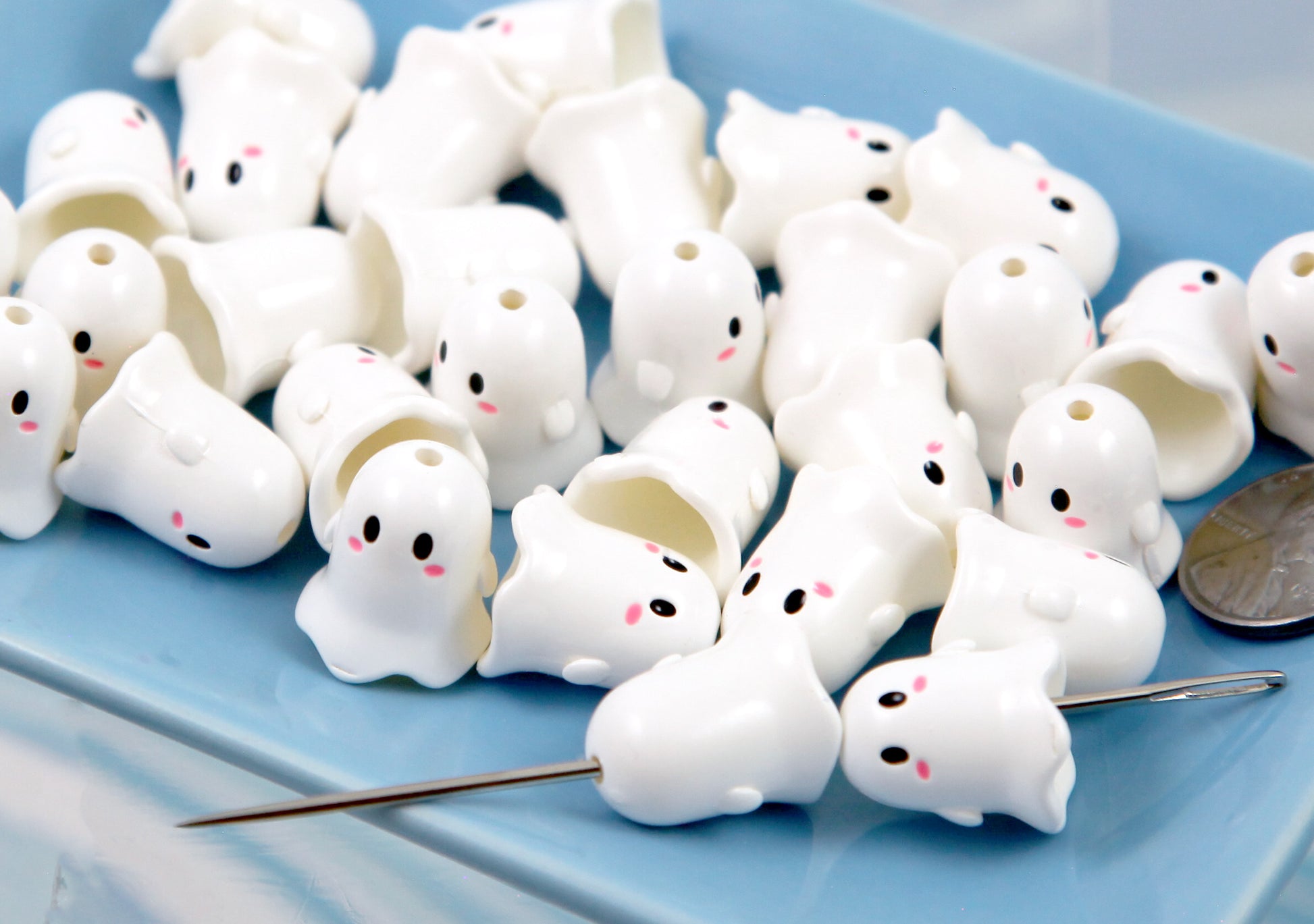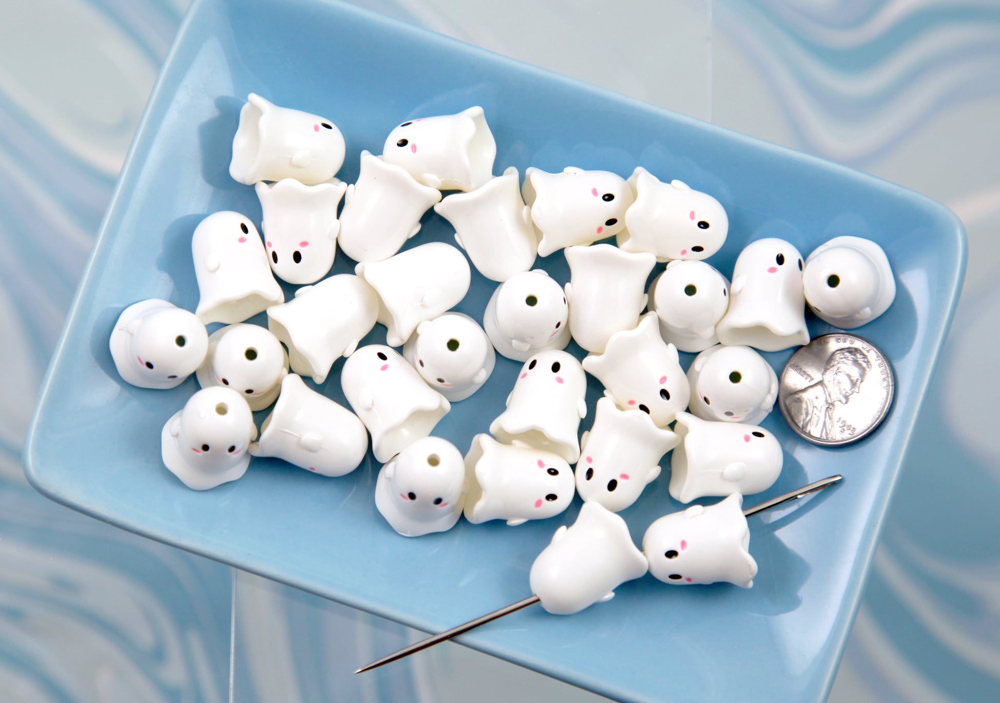 Ghost Beads - 10 pieces - 13mm Cute 3D Ghost Shape Plastic Acrylic or Resin Beads