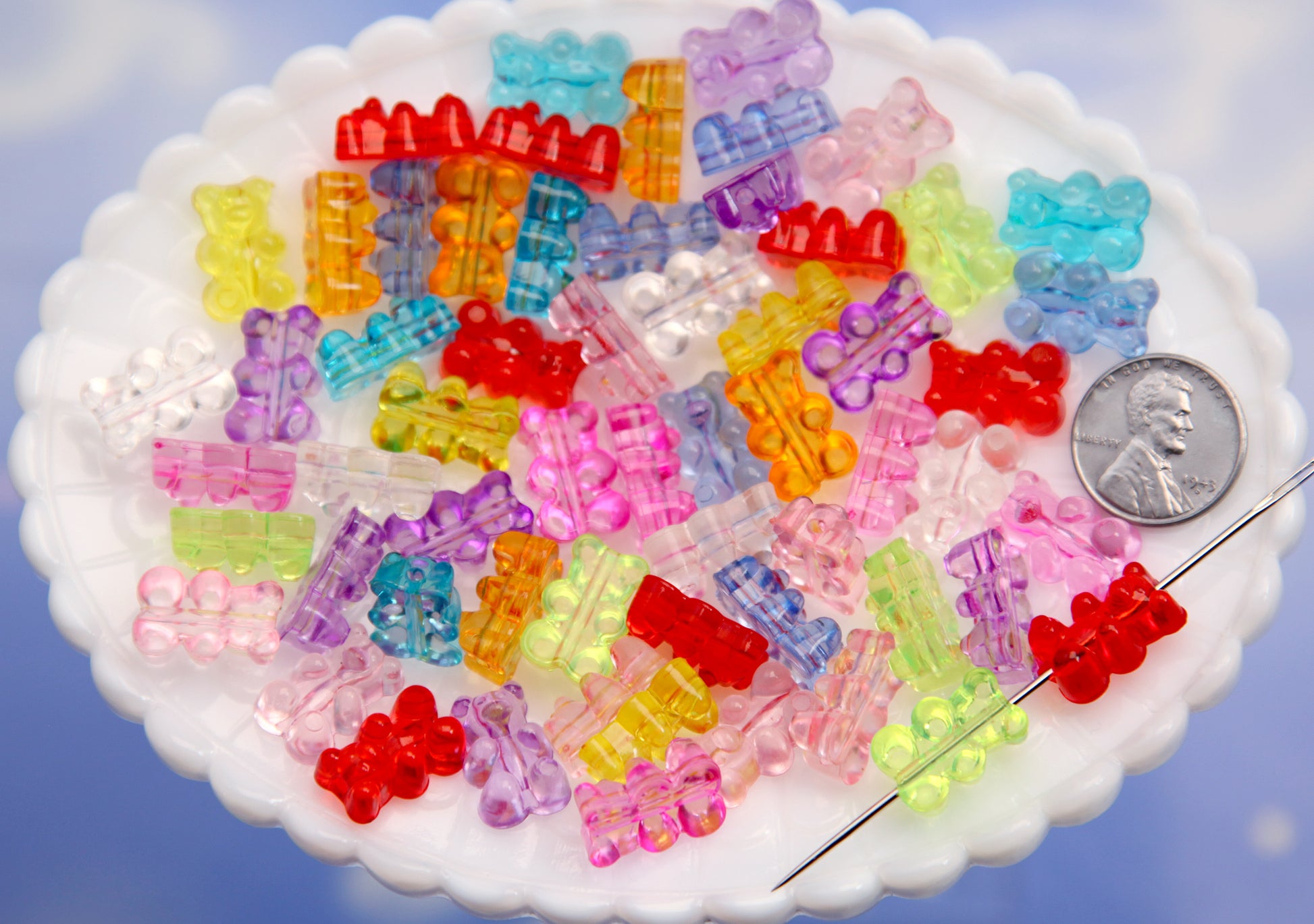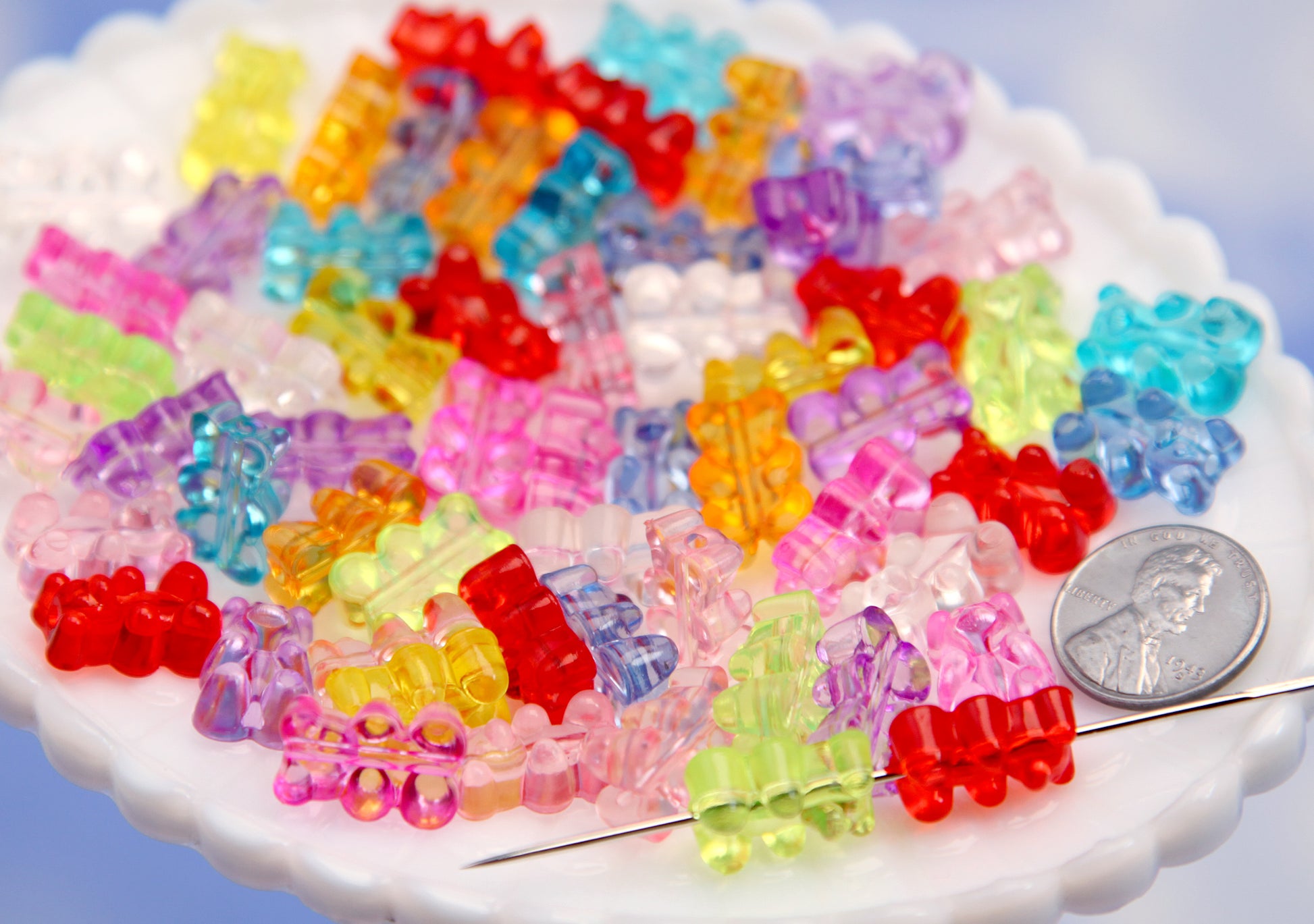 Gummy Bear Beads - 50 pcs - 15mm Fake Gummy Bears with Vertical Hole for Stringing - Fake Candy Resin Beads