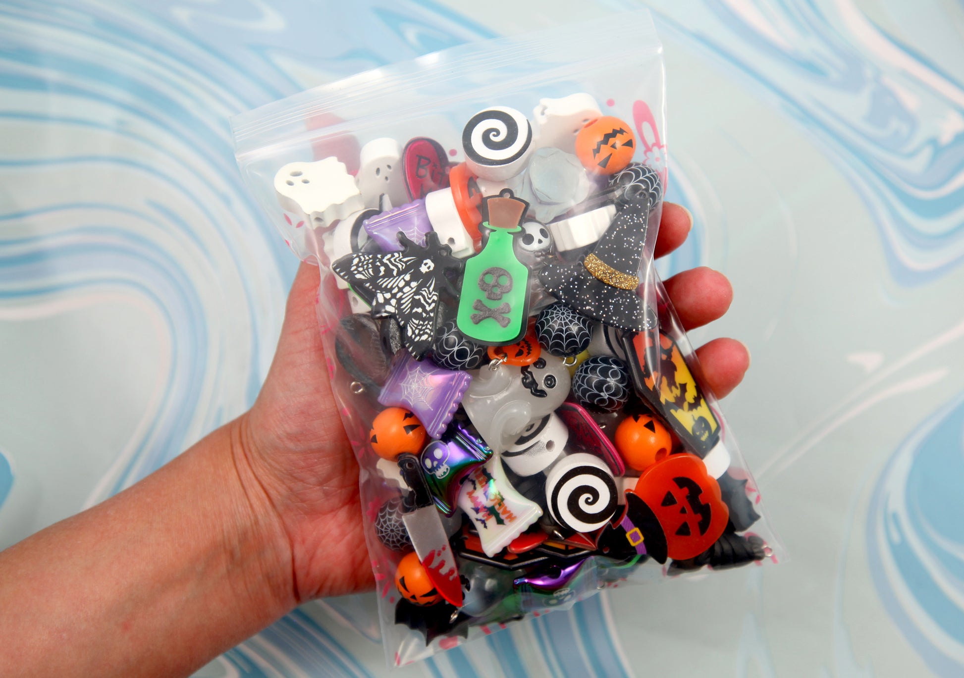 Halloween Charms and Beads Grab Bag - 100 pcs - Bead Soup - Cute Mixed Lot of Charms - great for kandi, ispy, sensory crafts, jewelry