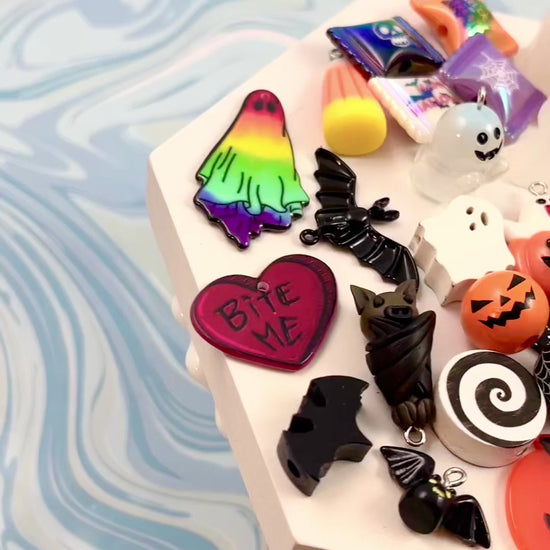 This set includes a colorful assortment of 100 Halloween themed charms and beads.