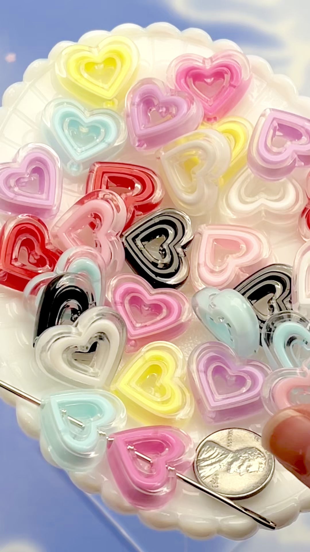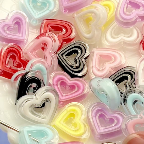 Heart Beads - 22mm Pastel Outline Heart Double Hearts Acrylic or Resin Beads (25 pieces)