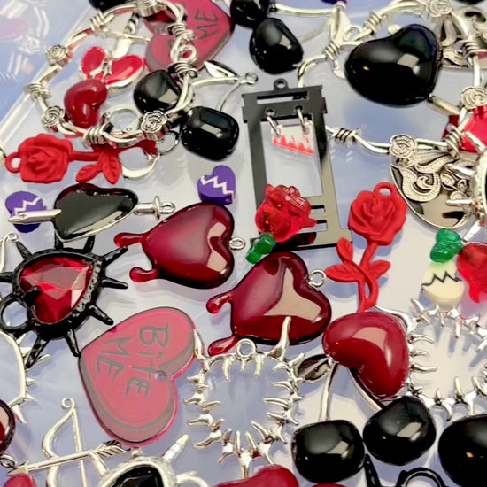 HEARTBREAK Dark Valentine's Day Charms and Beads Grab Bag - 25 to 100 pcs - Bead Soup - Mixed Lot Charms - for kandi, ispy, sensory, jewelry