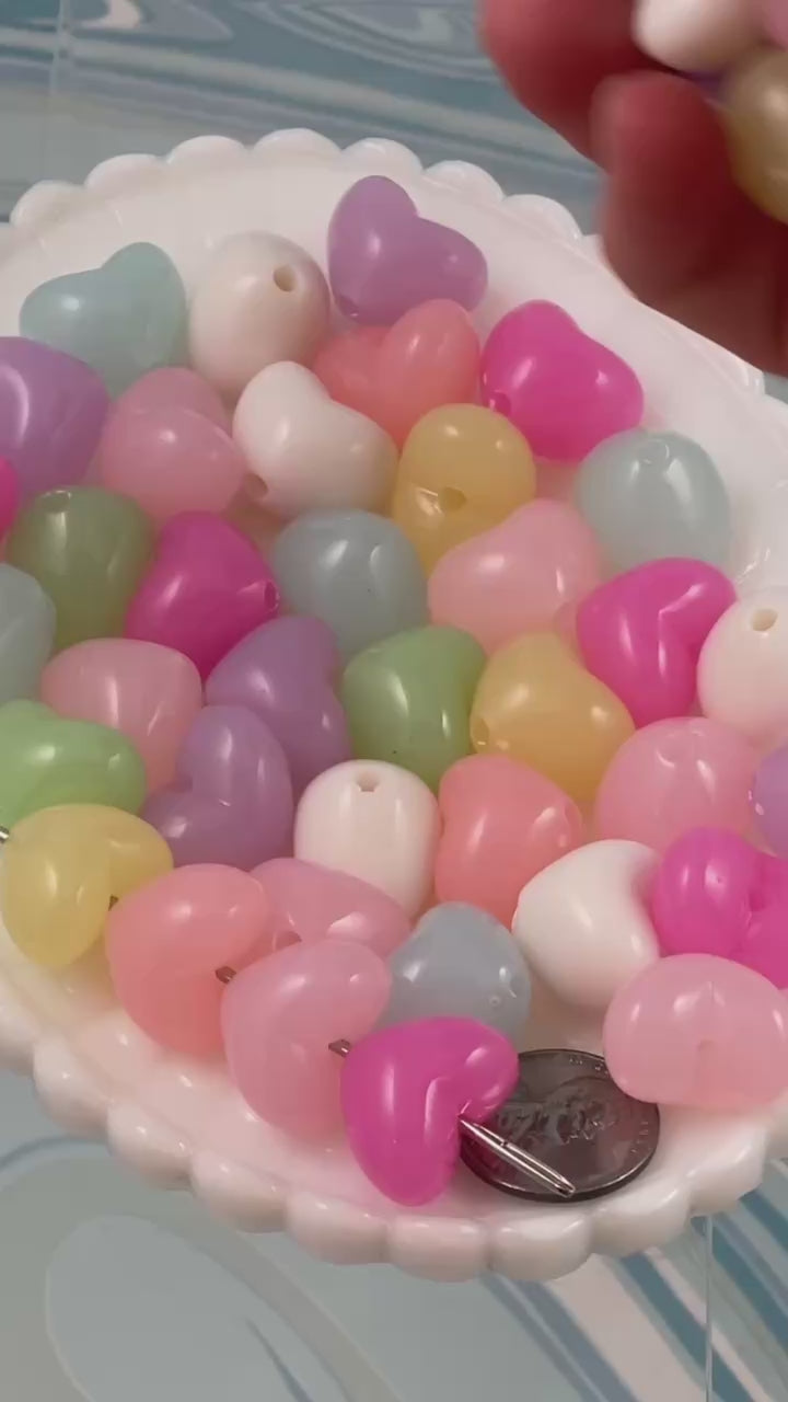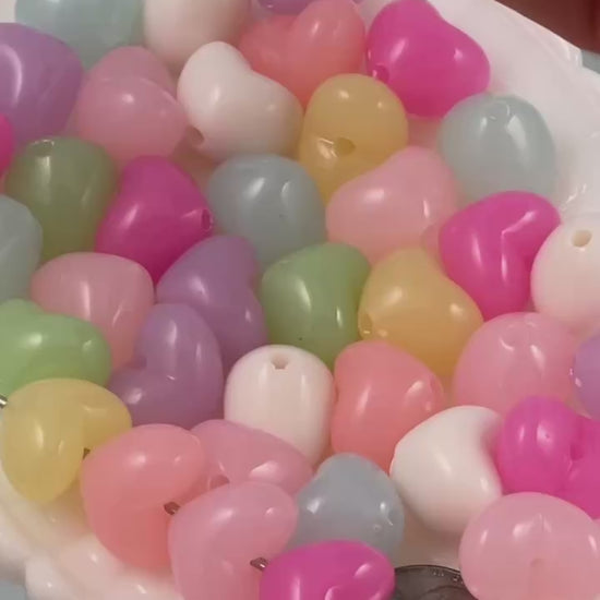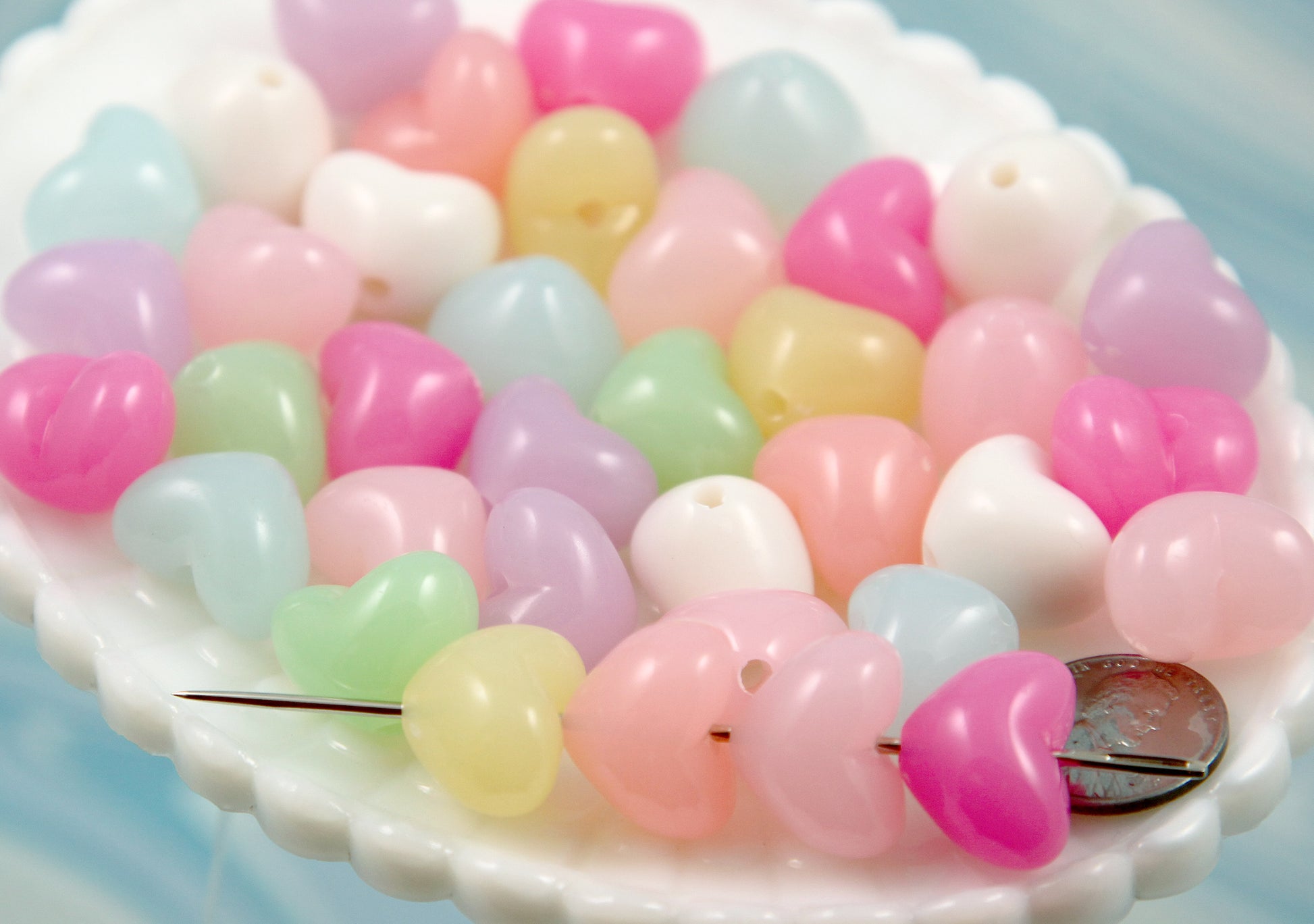 Jelly Heart Beads - 30 pieces - 16mm 3D Pastel Milky Color Chunky Heart Bead...