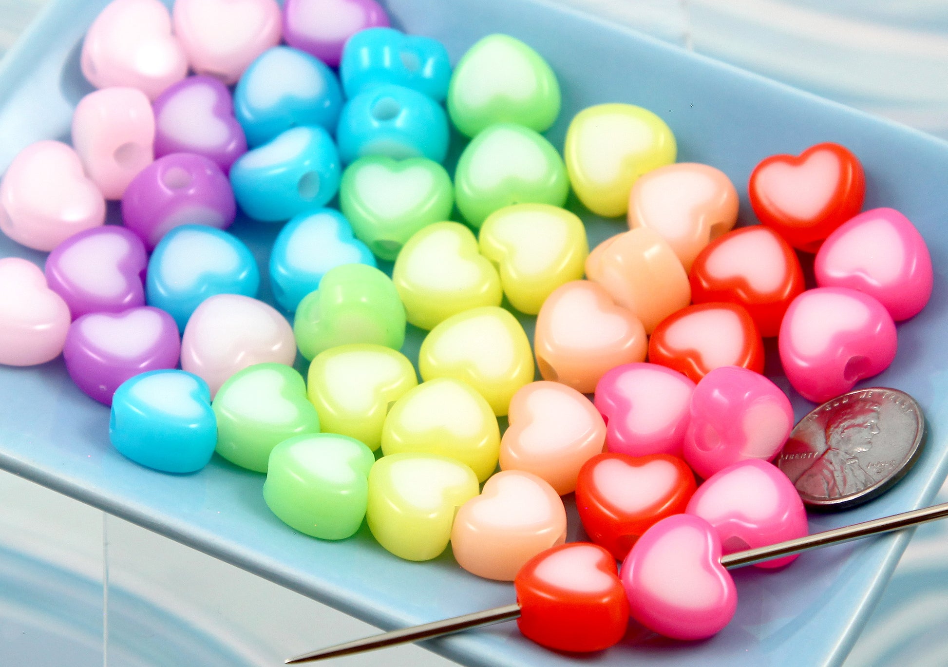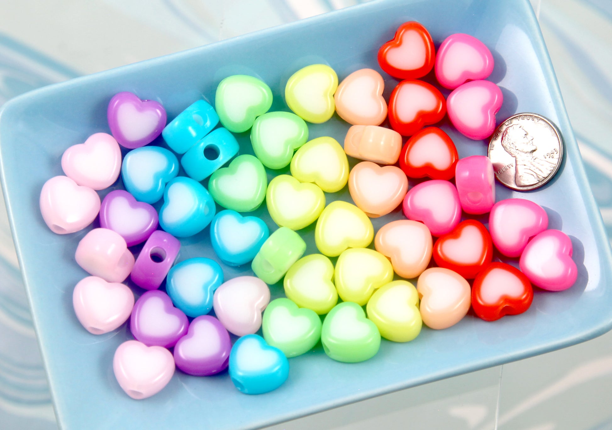 Jelly Heart Beads - 50 pieces - 16mm Two tone Milky Color Heart Bead Resin or Acrylic Beads