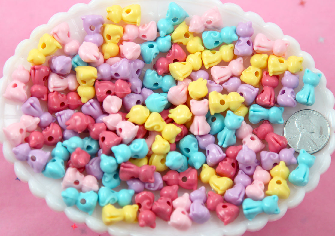 Kitty Cat Beads - 15mm Pastel Kitty Cat Bead Kawaii Acrylic or Plastic Beads - 100 pc set