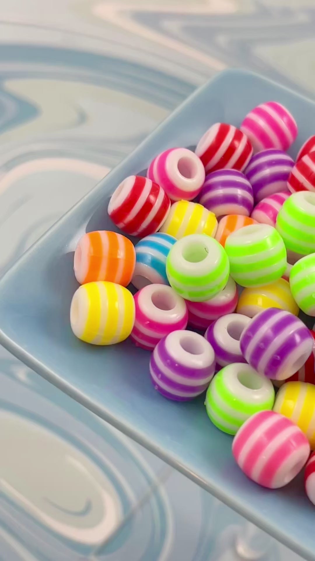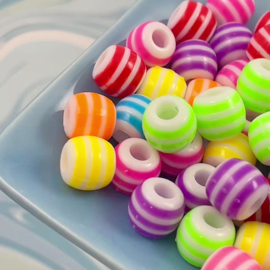 Large Hole Striped Beads - 75 pieces - 12mm Super Bright Color Striped Plastic Beads with Large Holes, mixed color, Acrylic Bead