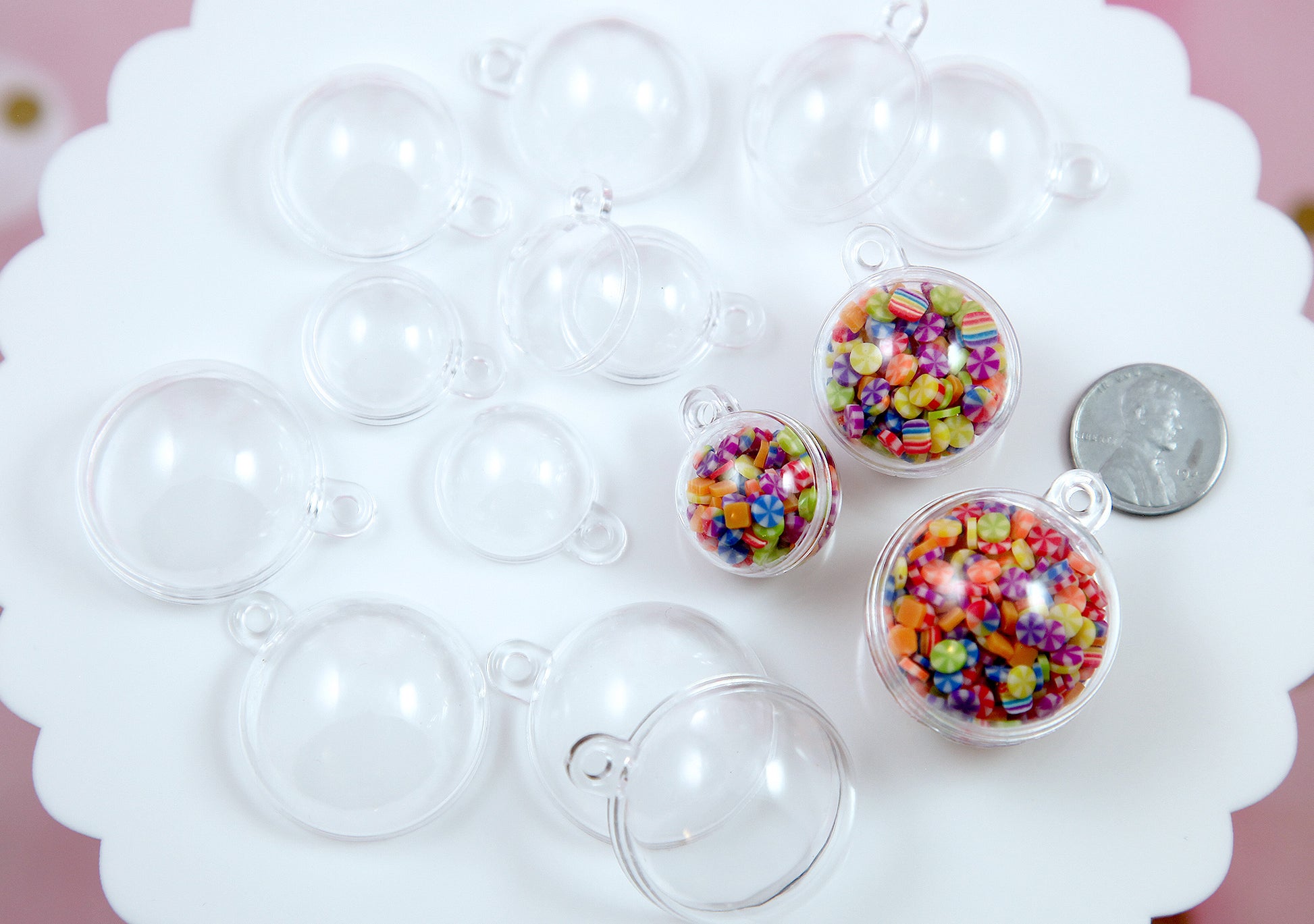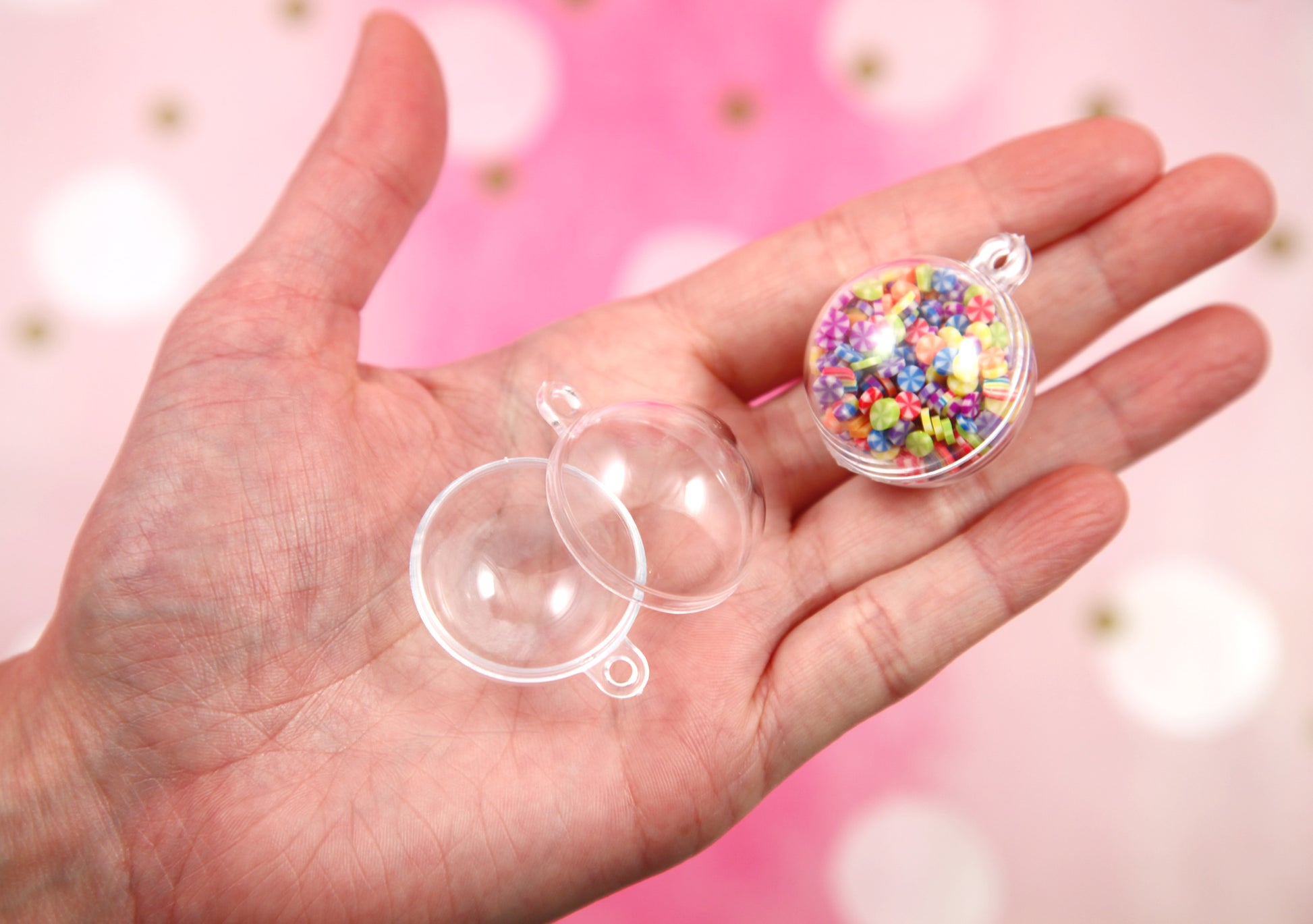 Mini Fillable Shaker Charm - 10 pieces - 30mm Clear Plastic Openable Blank Shaker Charm or Pendant, Fillable Hollow Blanks - Sphere Shape