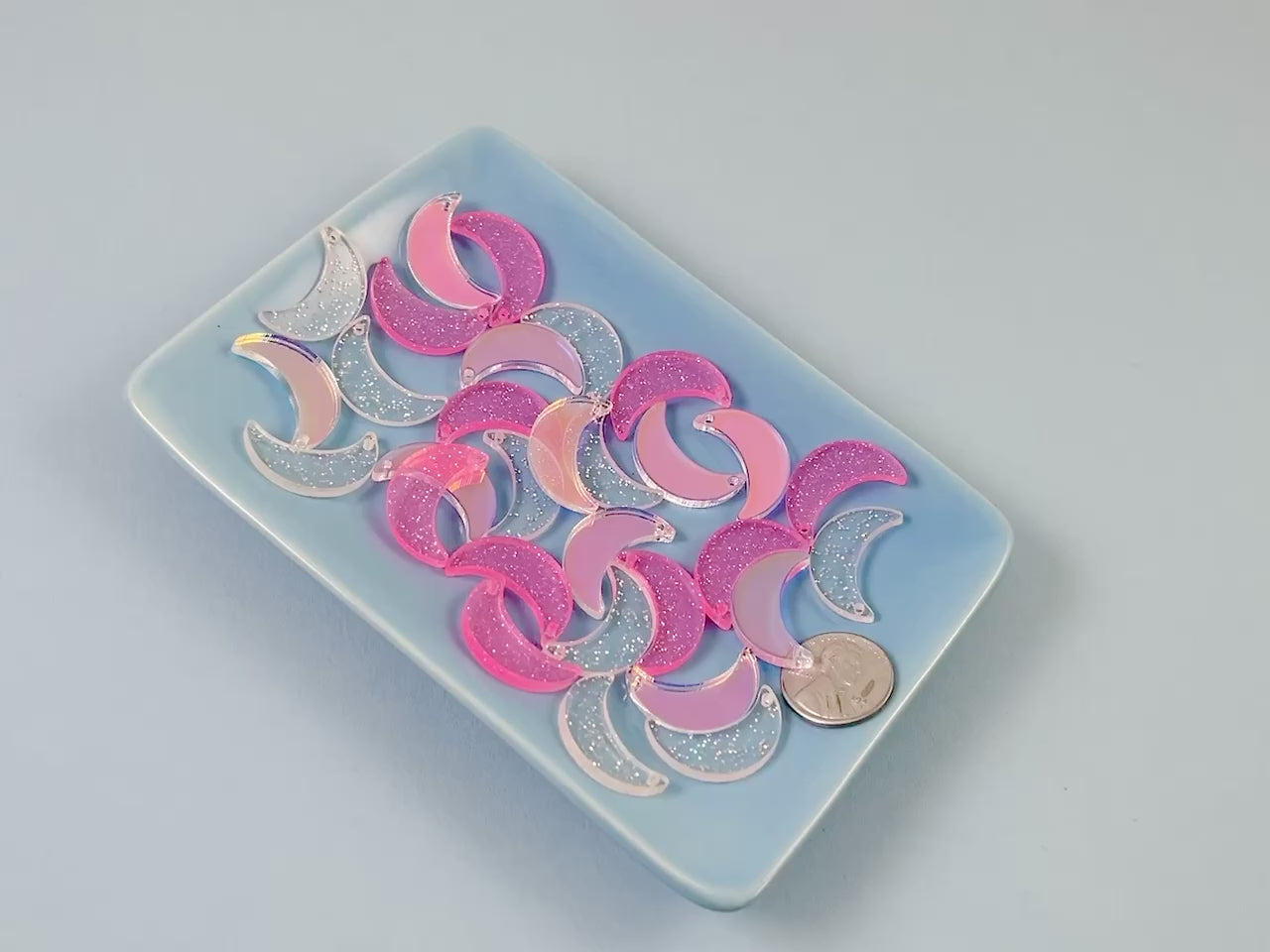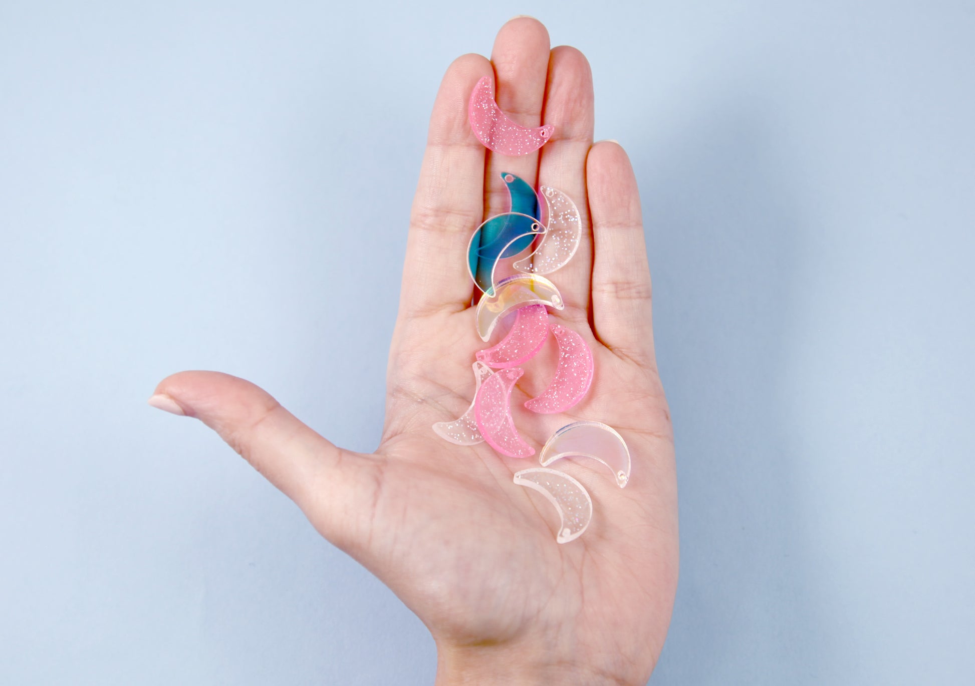 Lovely transparent moon pendants in a mix of holographic & glitter finishes. These are super pretty and unique!