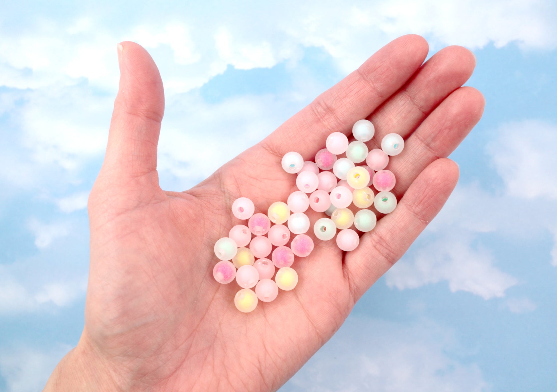 Beautiful little pastel-color beads - with another bead visible inside! Great for making your own unique jewelry!