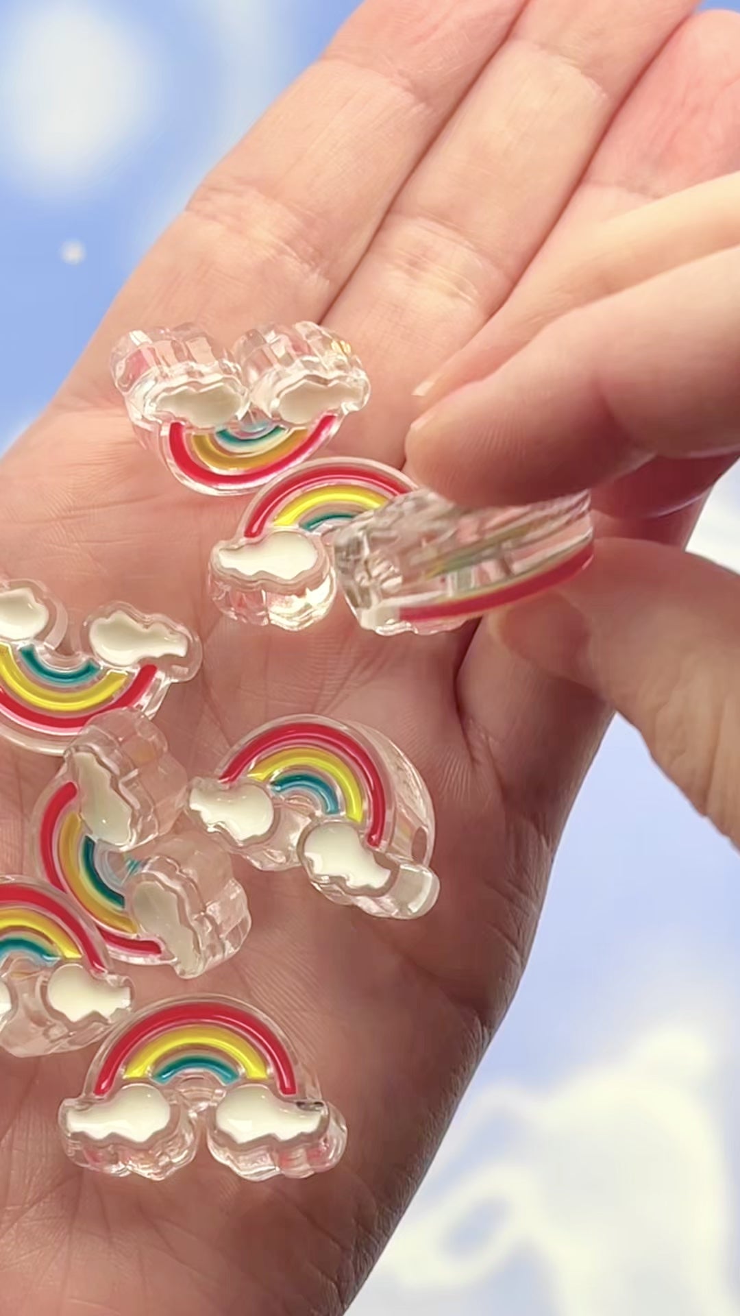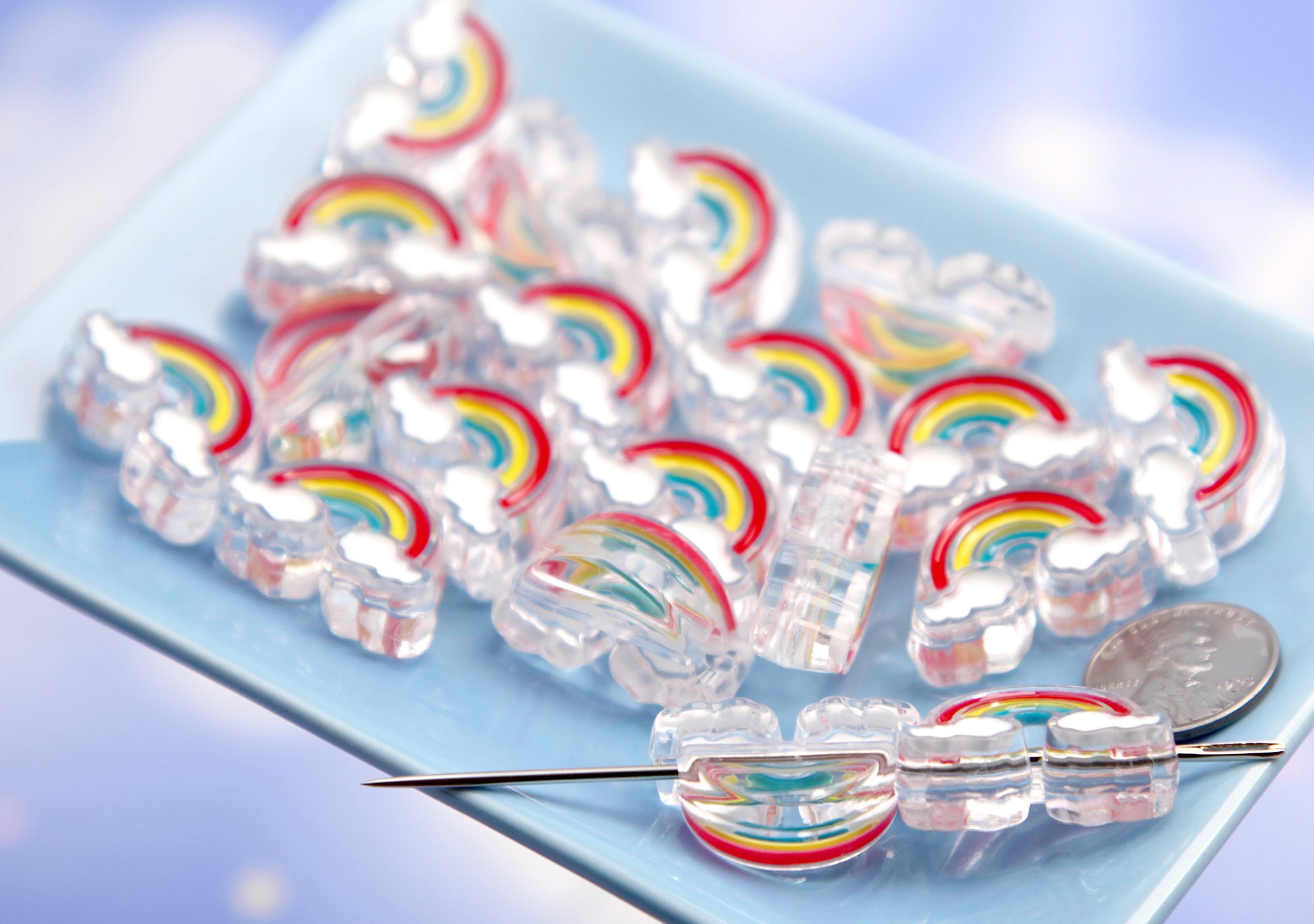 Rainbow Beads - 26mm Cute Rainbow and Clouds Enamel Style Acrylic Beads or Resin Beads (10 pieces)