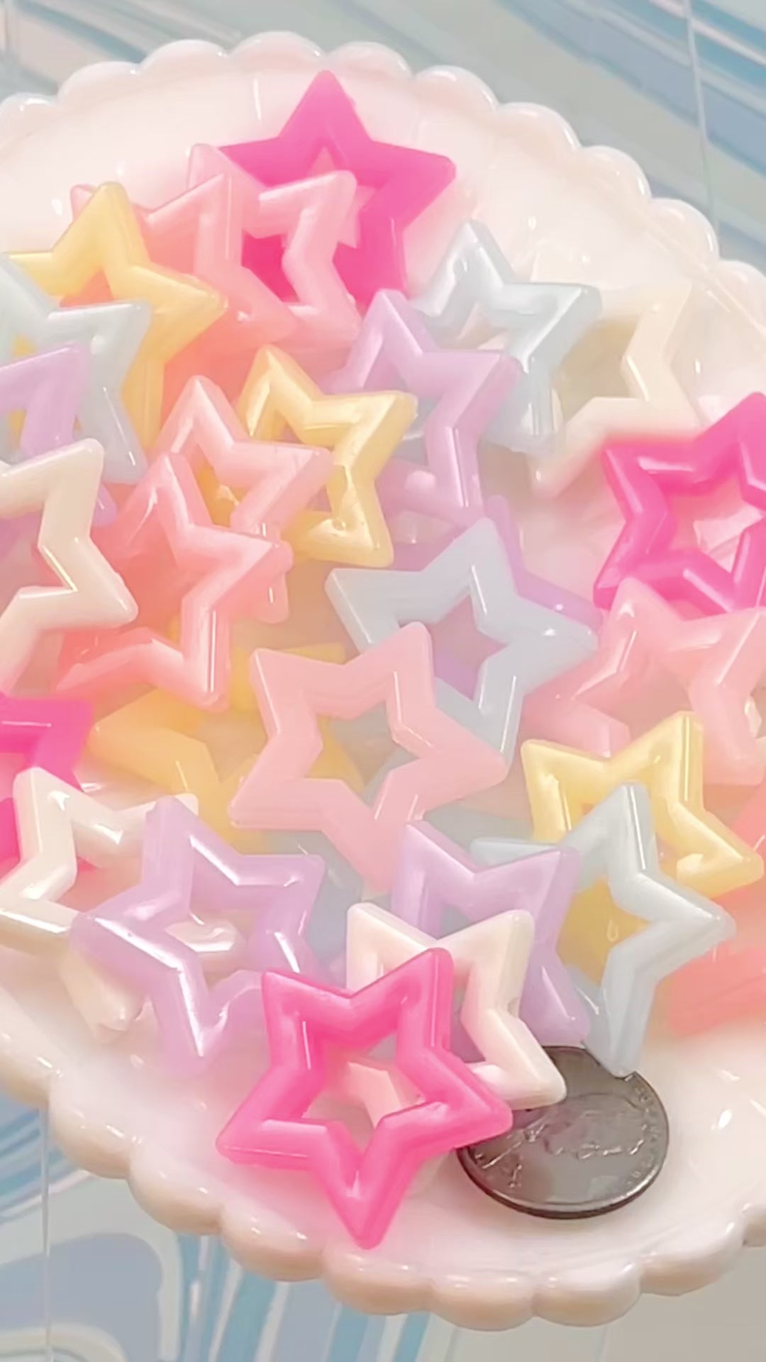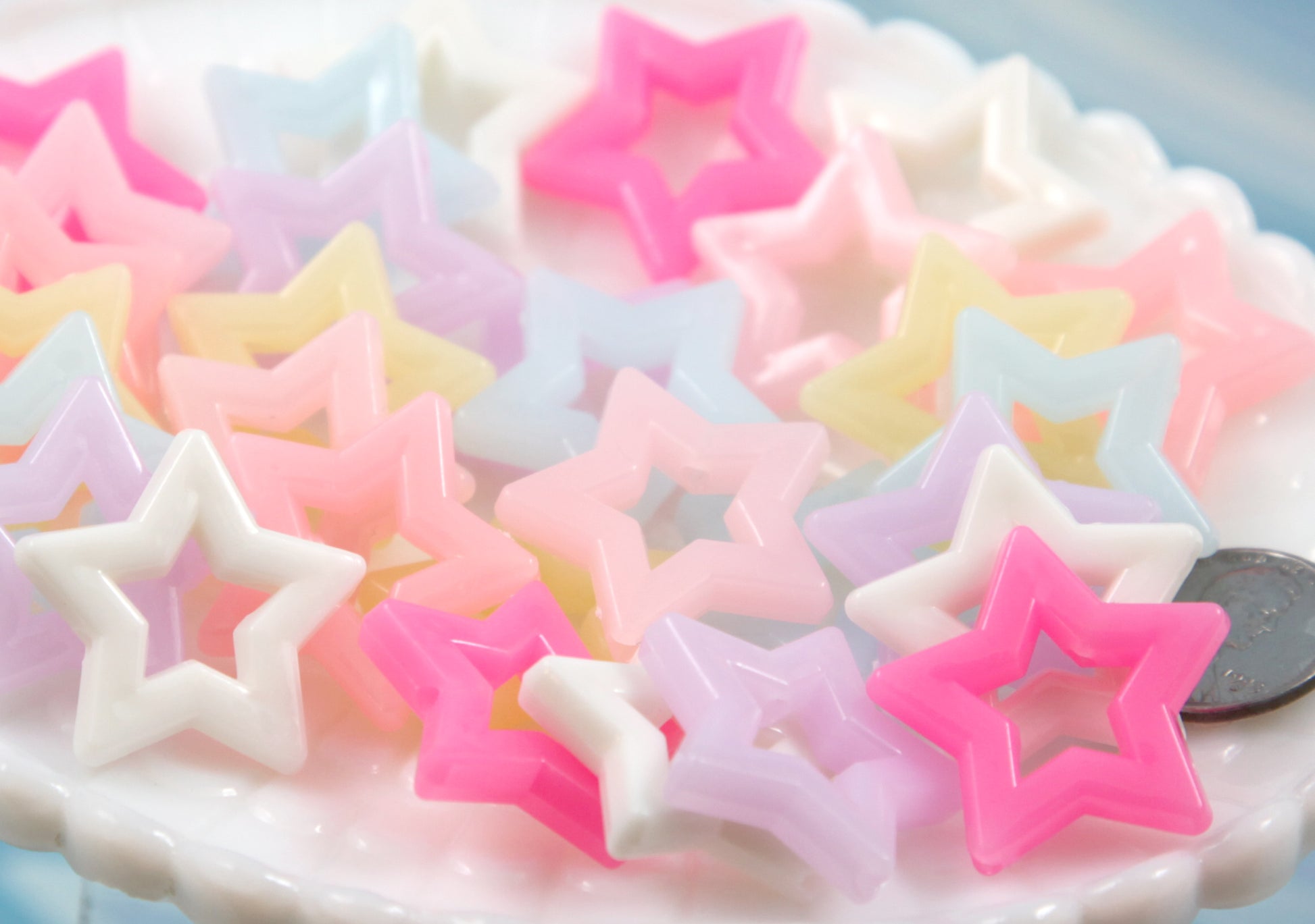 Star Beads - 27mm Milky Color Pastel Outline Star Chunky Acrylic or Resin Beads - 25 pcs set