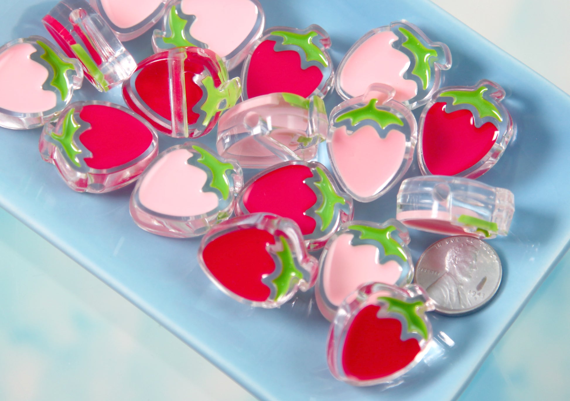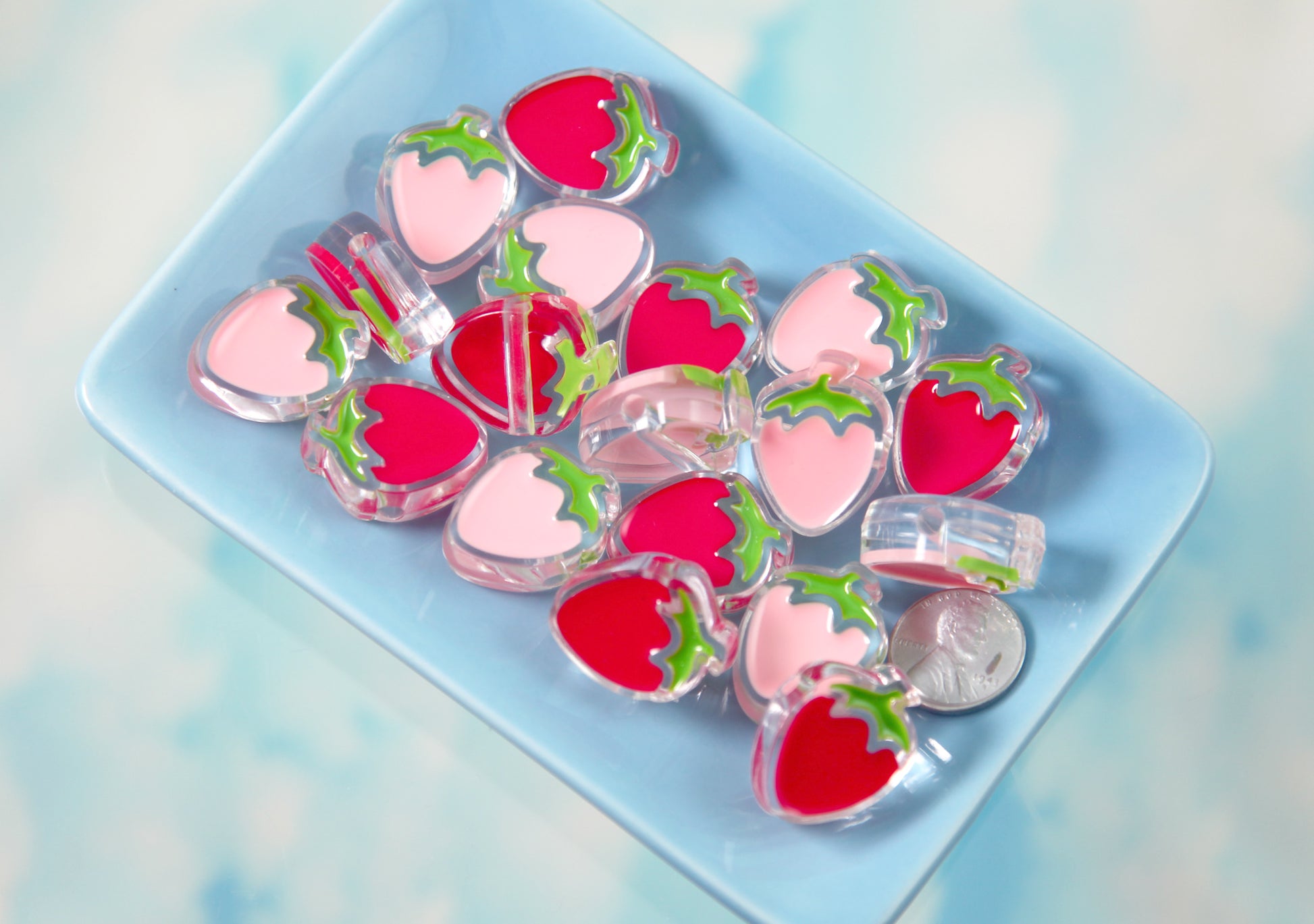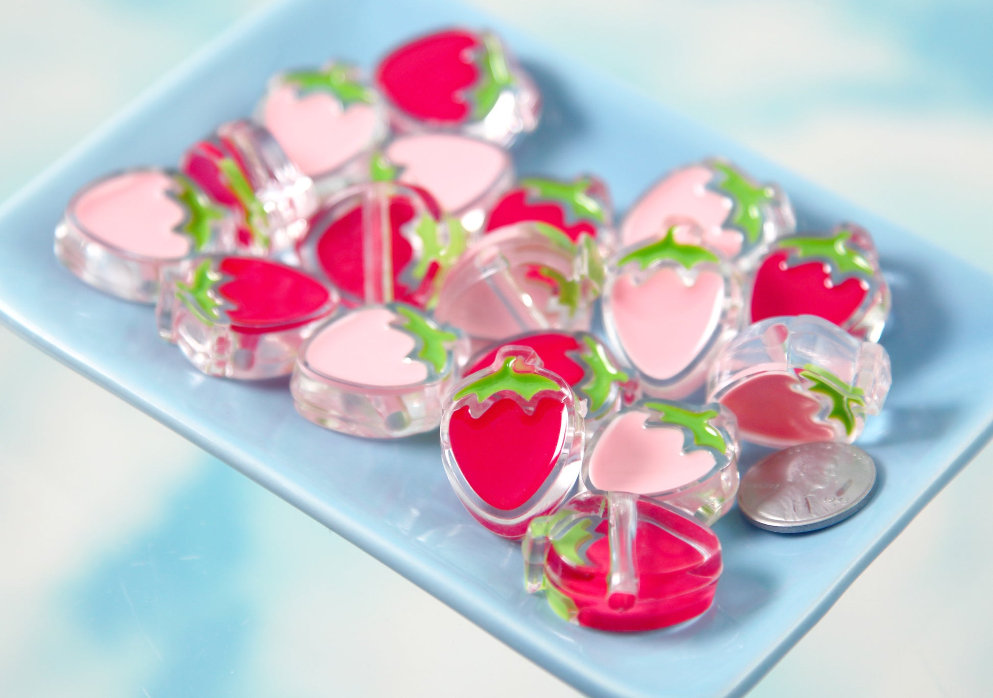Strawberry Beads - 26mm Strawberry Transparent Acrylic or Resin Beads - 8 pc set