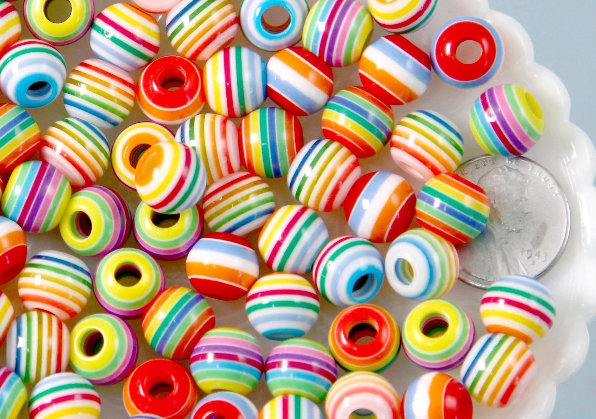 Striped Resin Beads - 10mm Large Hole Small Striped Resin or Acrylic Beads, mixed color,...